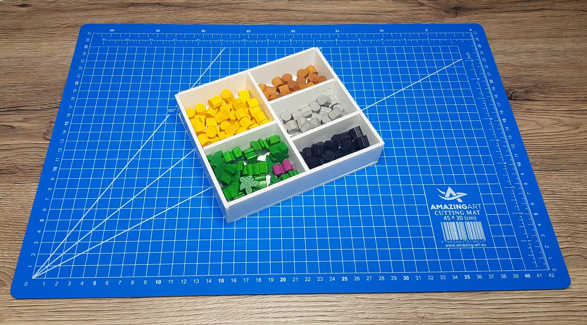 Jeśli tak samo jak ja, macie już dość zbyt długiego czasu poświęconego na przygotowanie rozgrywki, który w przypadku Keyflower niestety wydłuża się wraz z przybyciem dodatków, to dobrze trafiliście. Miałam już dość woreczków strunowych z elementami gry, które przestały mieścić mi się na stole, właśnie dlatego postanowiłam sama zaprojektować insert, który mogę wykorzystać podczas gry.