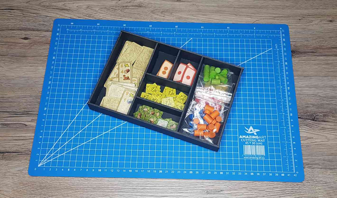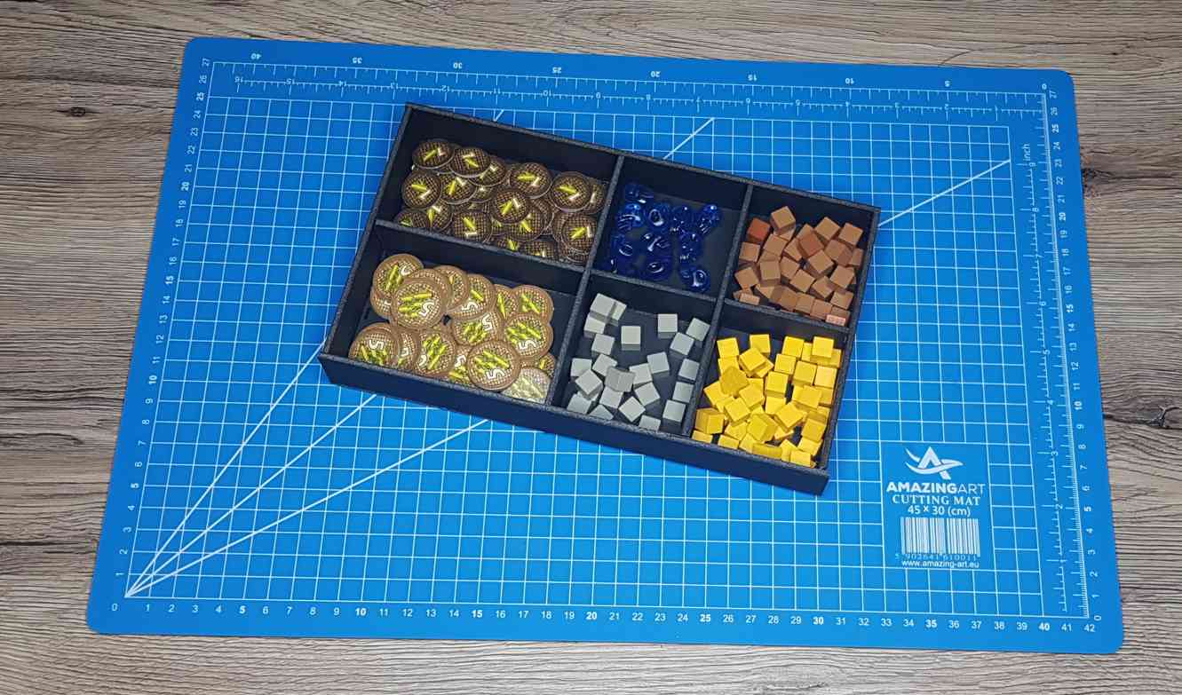 Kolejny insert za nami! Bardzo lubię praktyczne rozwiązania, które znacznie ułatwiają mi rozgrywkę, dlatego insert do Tzol’kina i dodatku Plemiona i Przepowiednie powstał z myślą o możliwości wyjęcia części z surowcami i ustawienia jej na stole, aby elementy nie zajmowały zbyt dużo miejsca na nim.