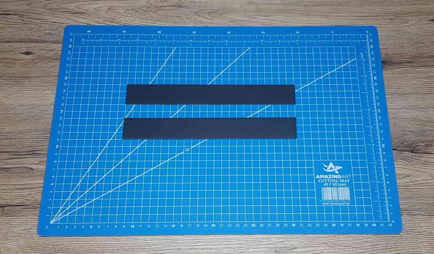 - Kolej na ścianki naszego boxa. W tym celu wycinamy 2 kawałki o wymiarach 28 cm długości/4 cm wysokości.