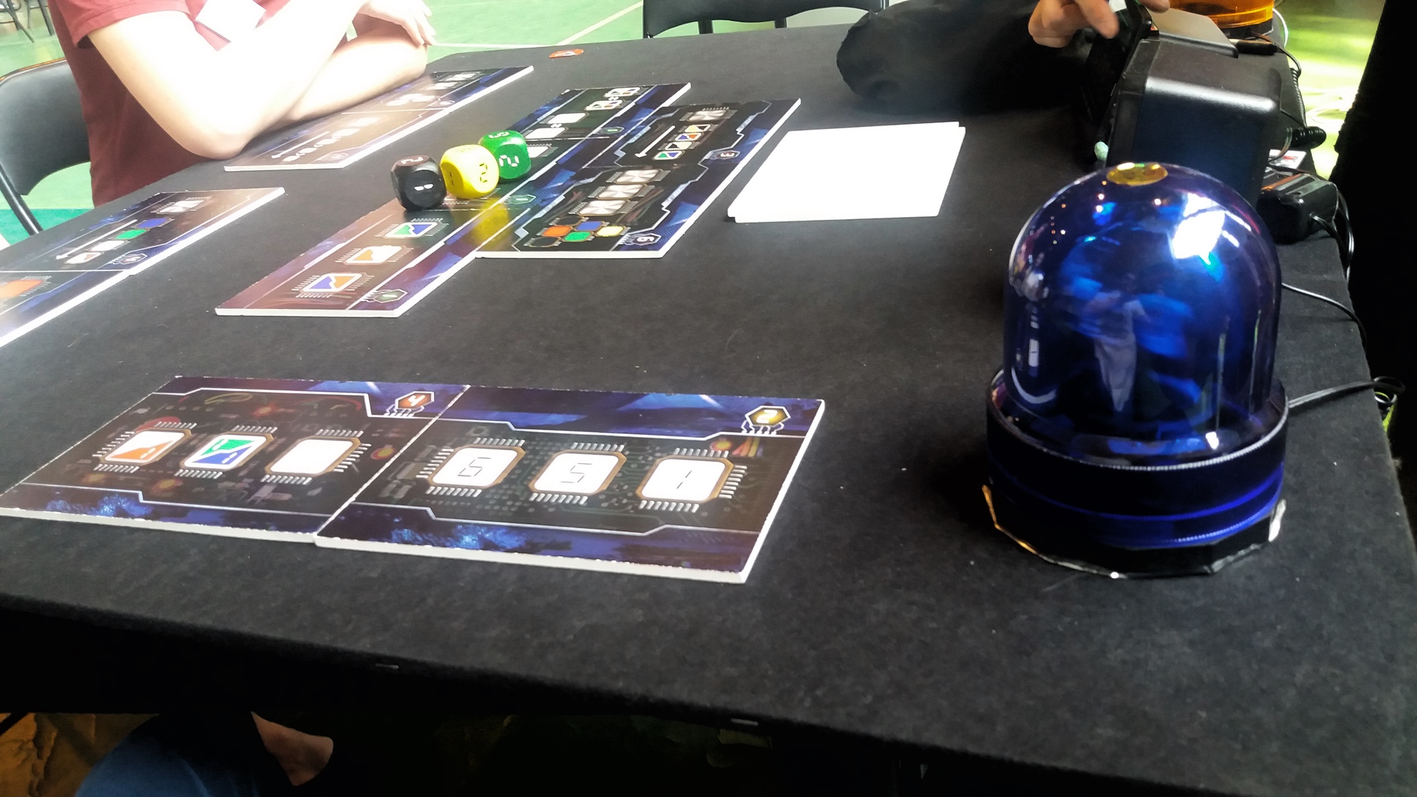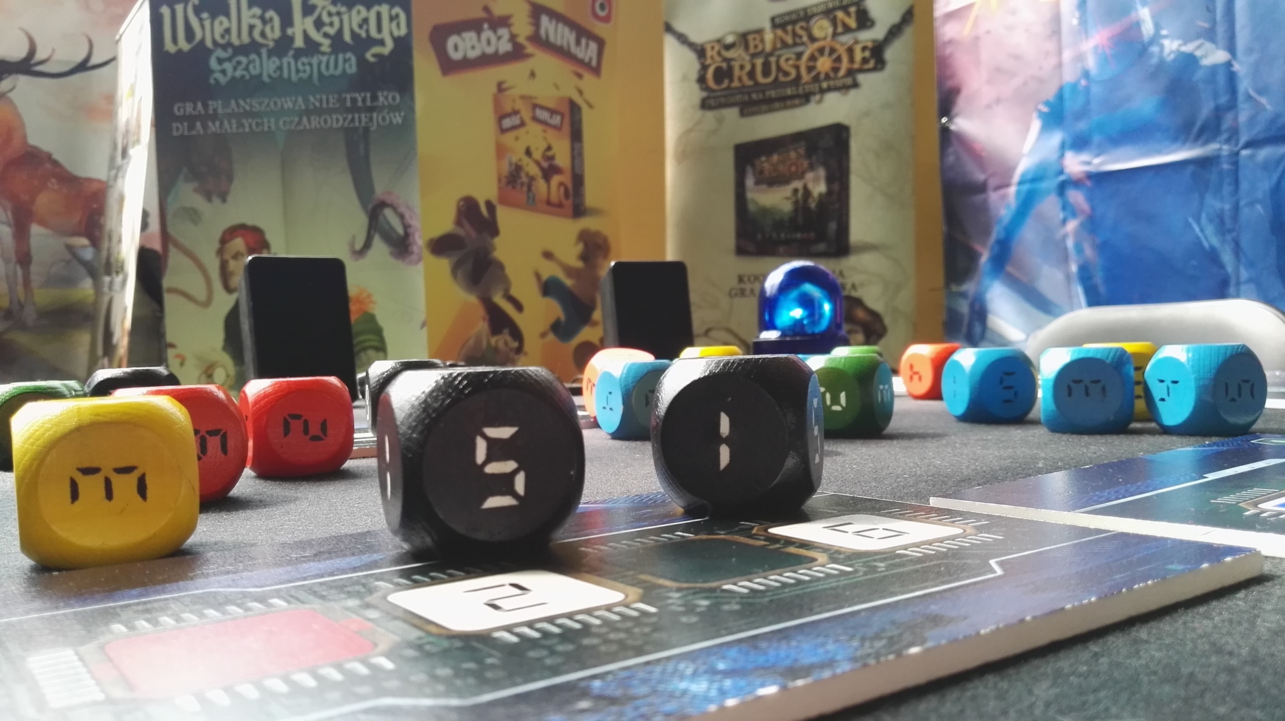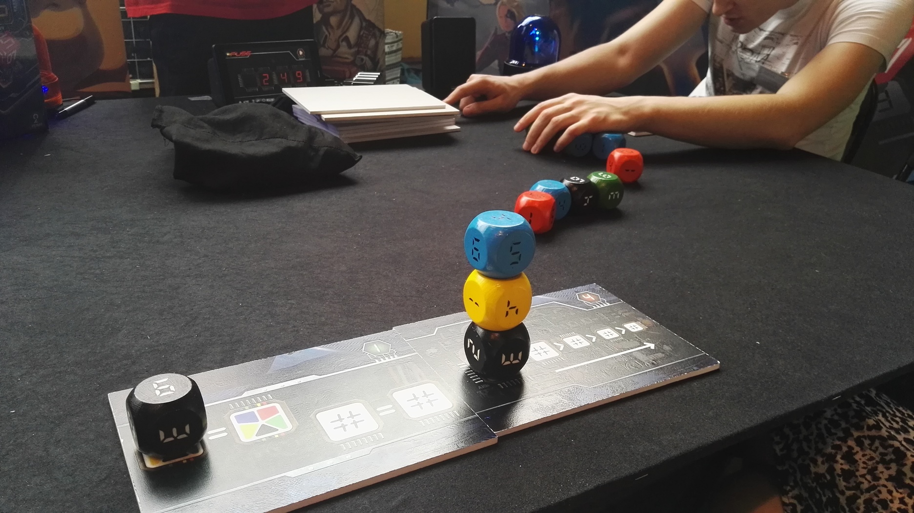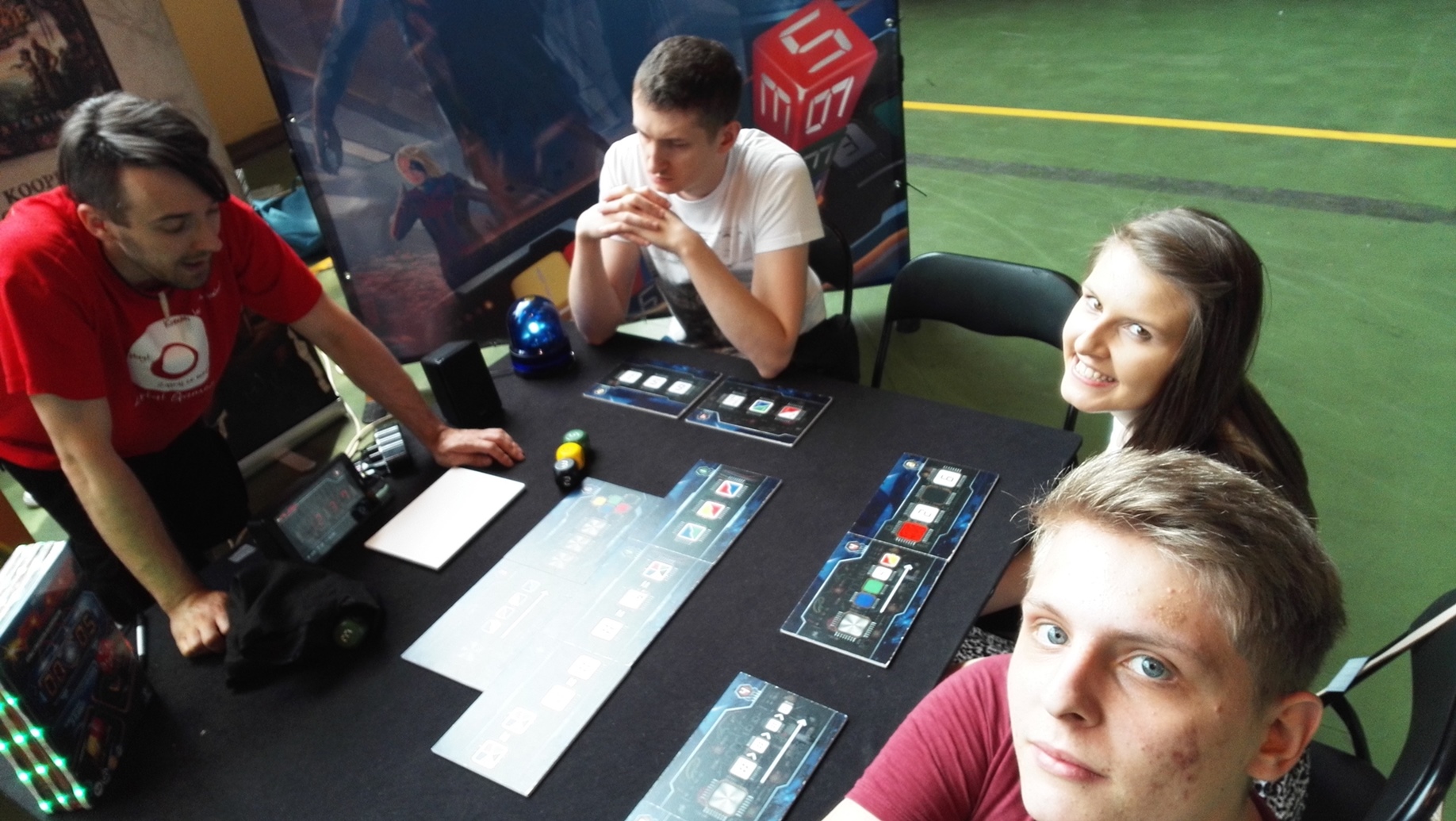 W końcu udało się zagrać w duża wersję Fusa. Rozgrywka była bardzo przyjemna. Kości były bardzo duże, klimatyczne i solidnie wykonane, chociaż mieliśmy mały problem z losowaniem ich z woreczka. Samo stoisko było przygotowane w taki sposób, byśmy mogli poczuć klimat rozbrajania bomb – moim zdaniem udało się uzyskać taki efekt. Światełka, głośniki i odmierzający czas stoper – wszystko to wpływało na fakt, że mogliśmy poczuć się jak prawdziwi saperzy, którym kończy się czas.