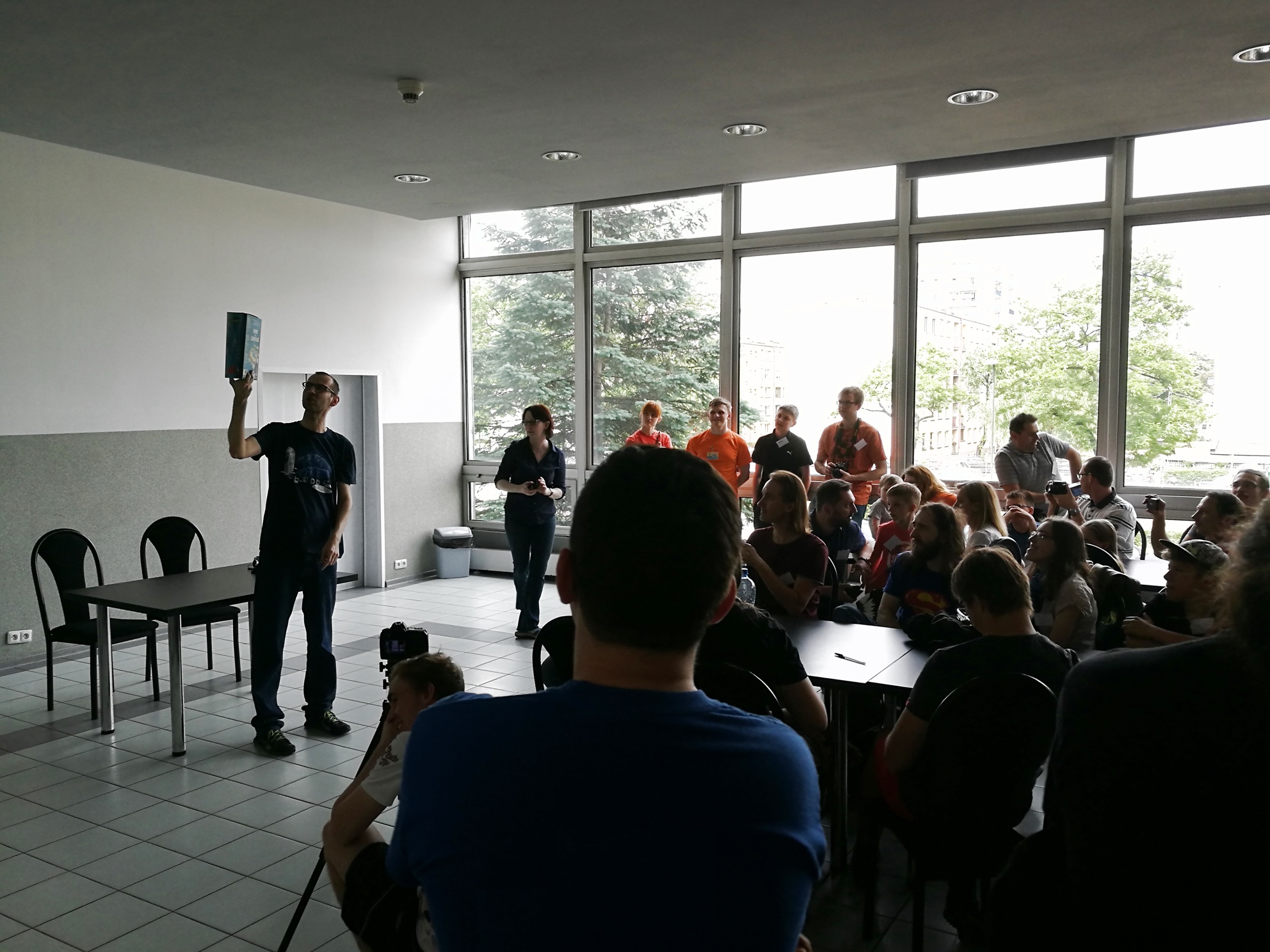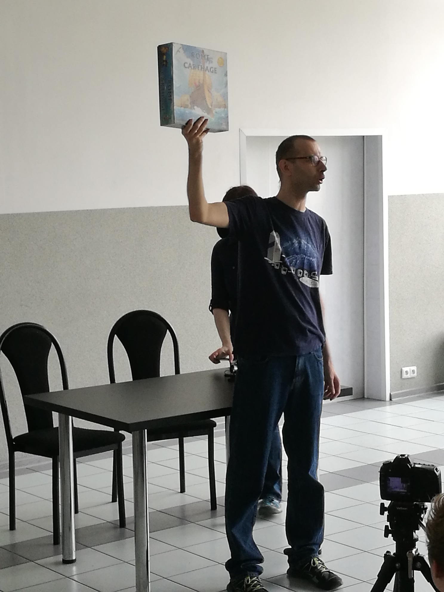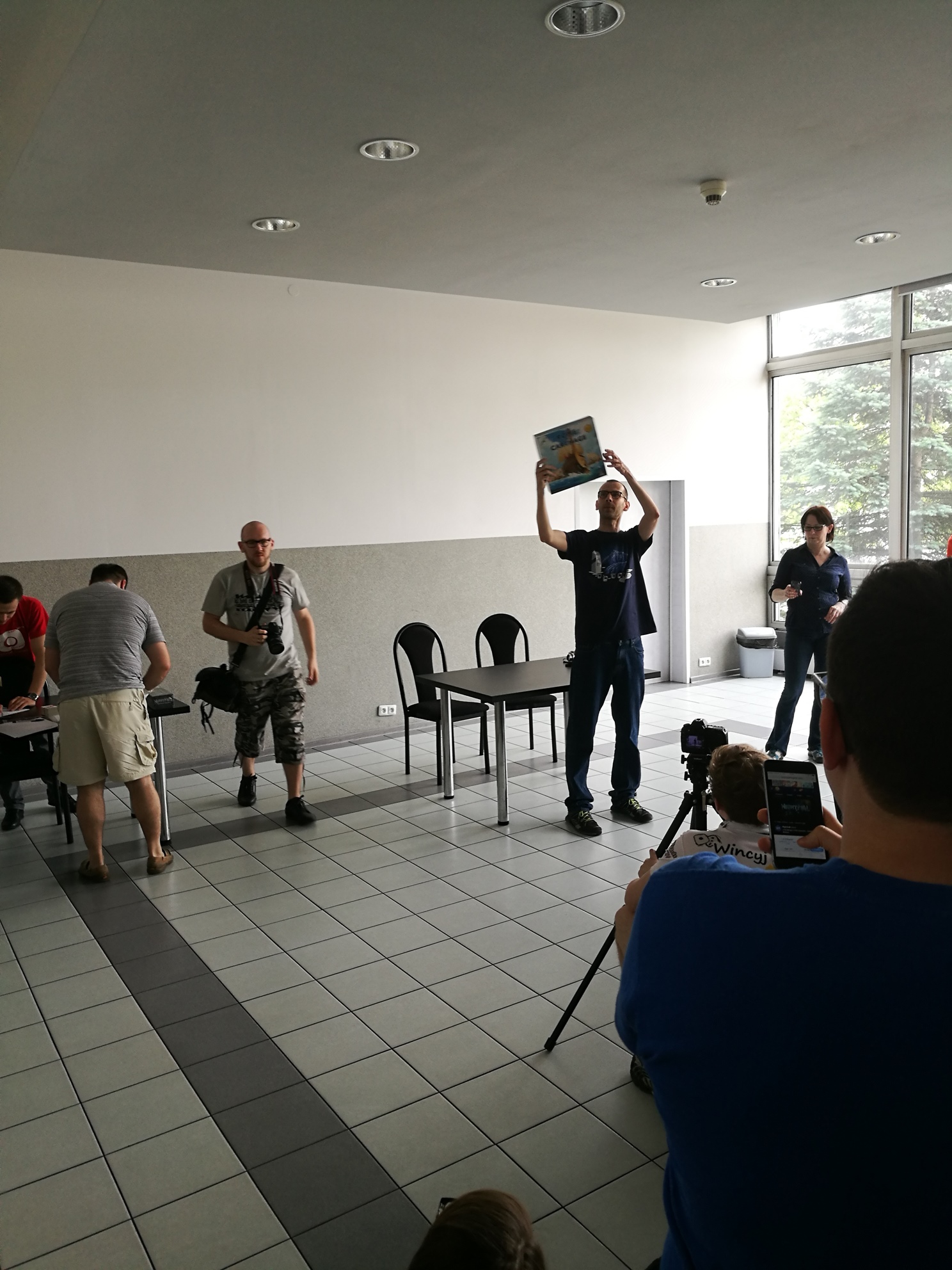 Na zewnątrz udało nam się spotkać Kaczmara, jednego z najpopularniejszych recenzentów na polskim youtube. Świetnie tłumaczy zasady gier, a jego recenzje są bardzo dobre i często zgadzam się z jego opiniami dotyczącymi gier. Kaczmar prowadzi kanał na YT o nazwie GeekFactorTv – zapraszam serdecznie. Po krótkiej rozmowie stwierdzam, że Kaczmar to bardzo pozytywny gość, także życzę mu powodzenia w rozwoju jego kanału.