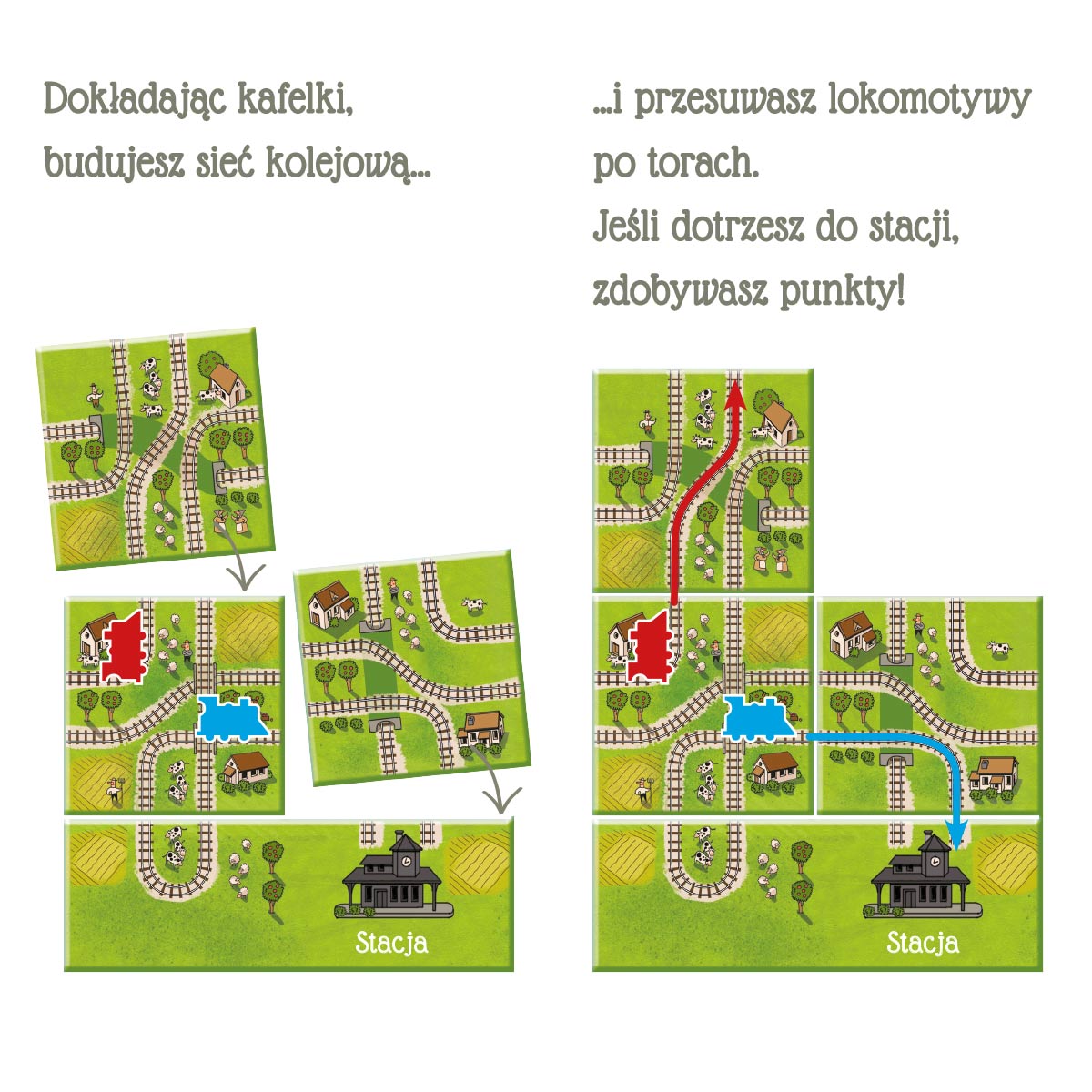 Gra ma proste zasady, wymagające jednak planowania i śledzenia poczynań przeciwników. Za pomocą kafelków gracz buduje sieć kolejową, po której jeżdżą jego lokomotywy. Każda z nich musi dotrzeć do innego miasta. Im szybciej tam dotrze, tym więcej punktów zdobędzie. Gracz musi jednak bacznie obserwować lokomotywy innych graczy i pilnować, aby nie dojechały do stacji przed jego lokomotywami! Wiele osób ucieszy z pewnością możliwość rozgrywania trybu jednoosobowego! Dodatkowo są przewidziane prezenty dla graczy, które zostaną dołączone do gry: