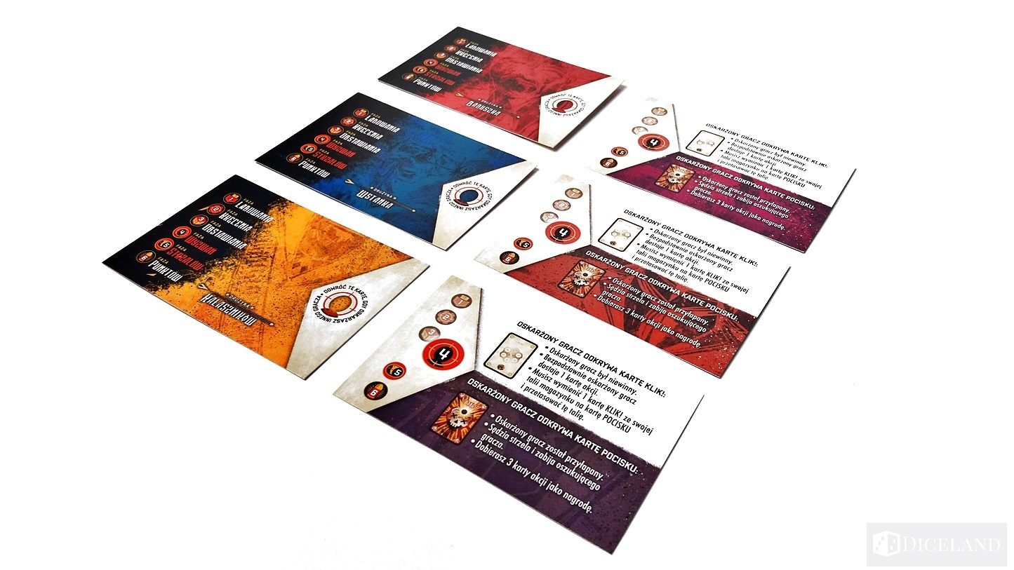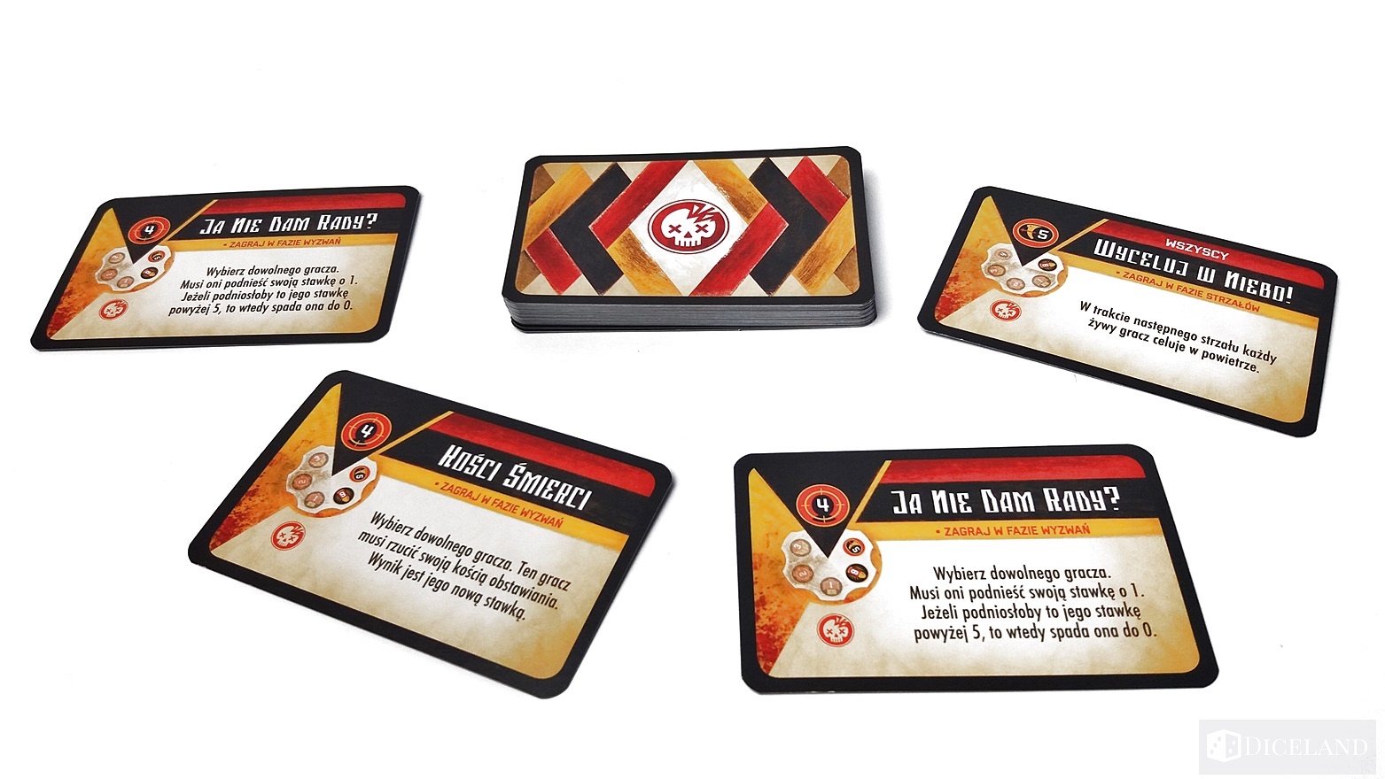Cieszy mnie fakt, że do gry dołączone zostały karty akcji. Dodają one niesamowitego smaczku grze i wpływają na dużą jej regrywalność oraz uatrakcyjniają każdą z partii. W zasadzie to każda partia w Rosyjską Ruletkę będzie się różniła od następnych. Nie ma tutaj jednej strategii wygrywającej. Czasem udaje się wygrać w miarę szybko obstawiając wysokie wyniki, czasem będziemy oszukiwać w ramach zasad i nikt tego nie zauważy, a jeszcze innym razem zostaniemy jedynymi żywymi na placu boju.