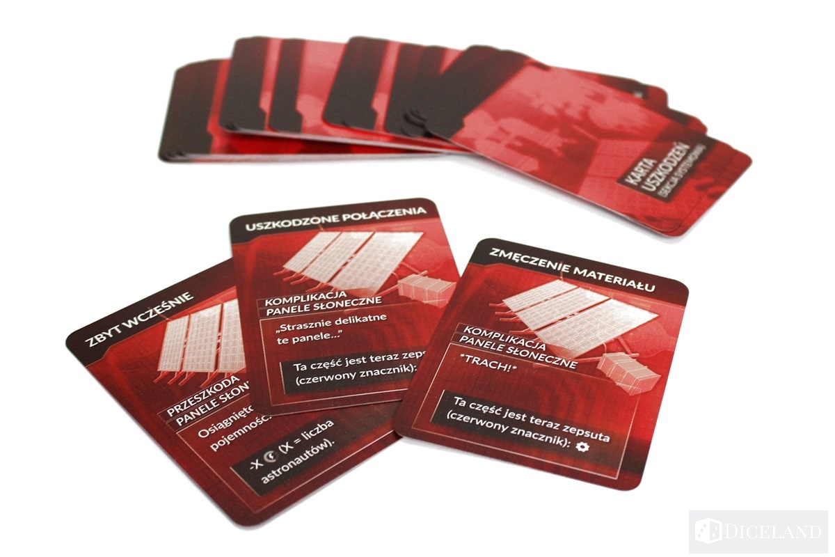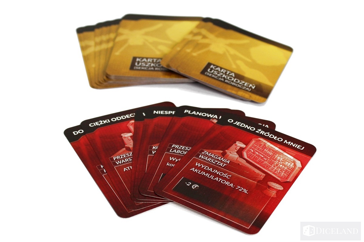 W grze nie zabrakło również sporej liczby kart. Zdecydowaną większość stanowią karty uszkodzeń, które będą nam opisywać przykre konsekwencje usterek w naszym nowym domu.