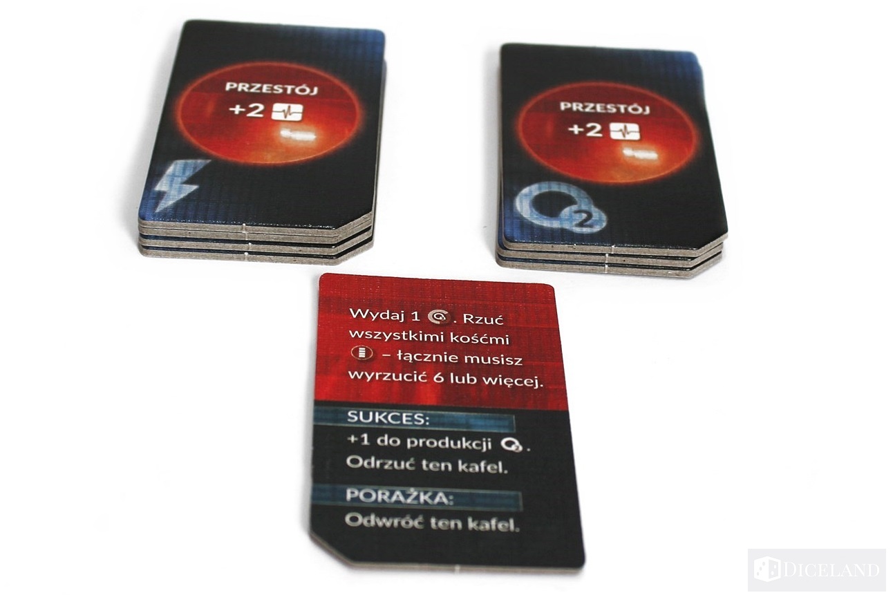 Pracochłonne jest także przygotowanie rozgrywki. To druga istotna wada gry. Możemy z nią jednak walczyć. Jeśli odpowiednio posegregujemy wszystkie elementy oraz zrezygnujemy z zaznaczania zielonymi kostkami wszystkich podzespołów, które poprawnie działają w naszej stacji, to czas rozłożenia gry staje się akceptowalny.