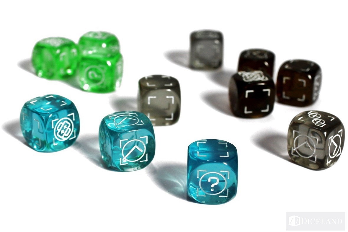 Podobnie jak 15 specjalnych kości, które w trójkach służyć będą nam do określonych zadań. Trzech z nich użyjemy, aby określić poziom uszkodzeń w każdej z sekcji naszej jednostki. Pozostałe dwanaście wykorzystamy do określenia efektu wykonywania czterech głównych akcji dostępnych w grze. Szczególnie urokliwe wydają mi się te ostatnie, wykonane z przezroczystego tworzywa w różnych kolorach.