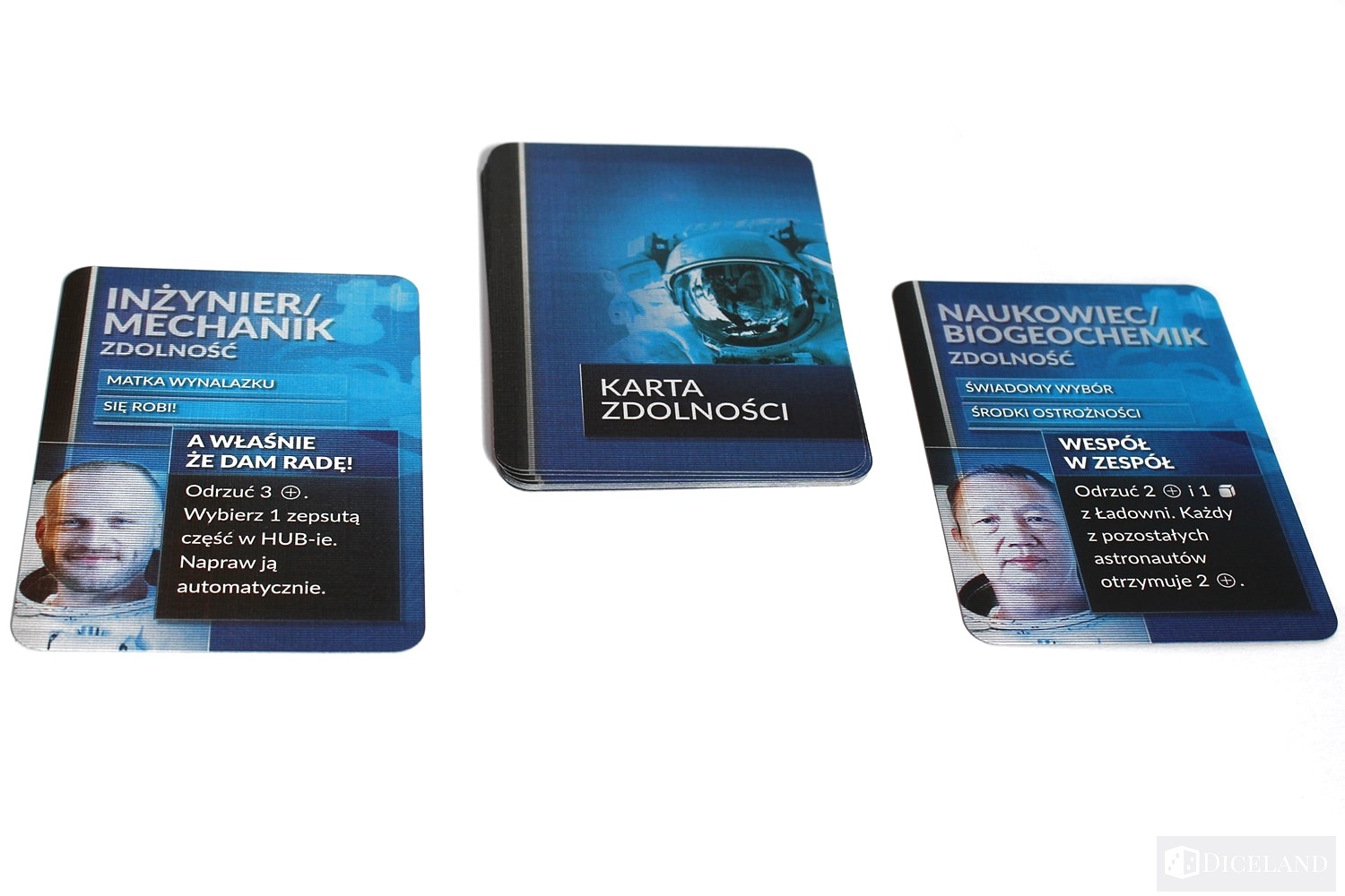 Nie możemy zapomnieć o planszach graczy! Autorzy pozwolą nam wcielić się w naukowca, geologa, inżyniera i medyka. Każdy z nich wykazuje tą samą wytrzymałość na odniesione rany, jednak prezentuje zupełnie inny zestaw umiejętności.