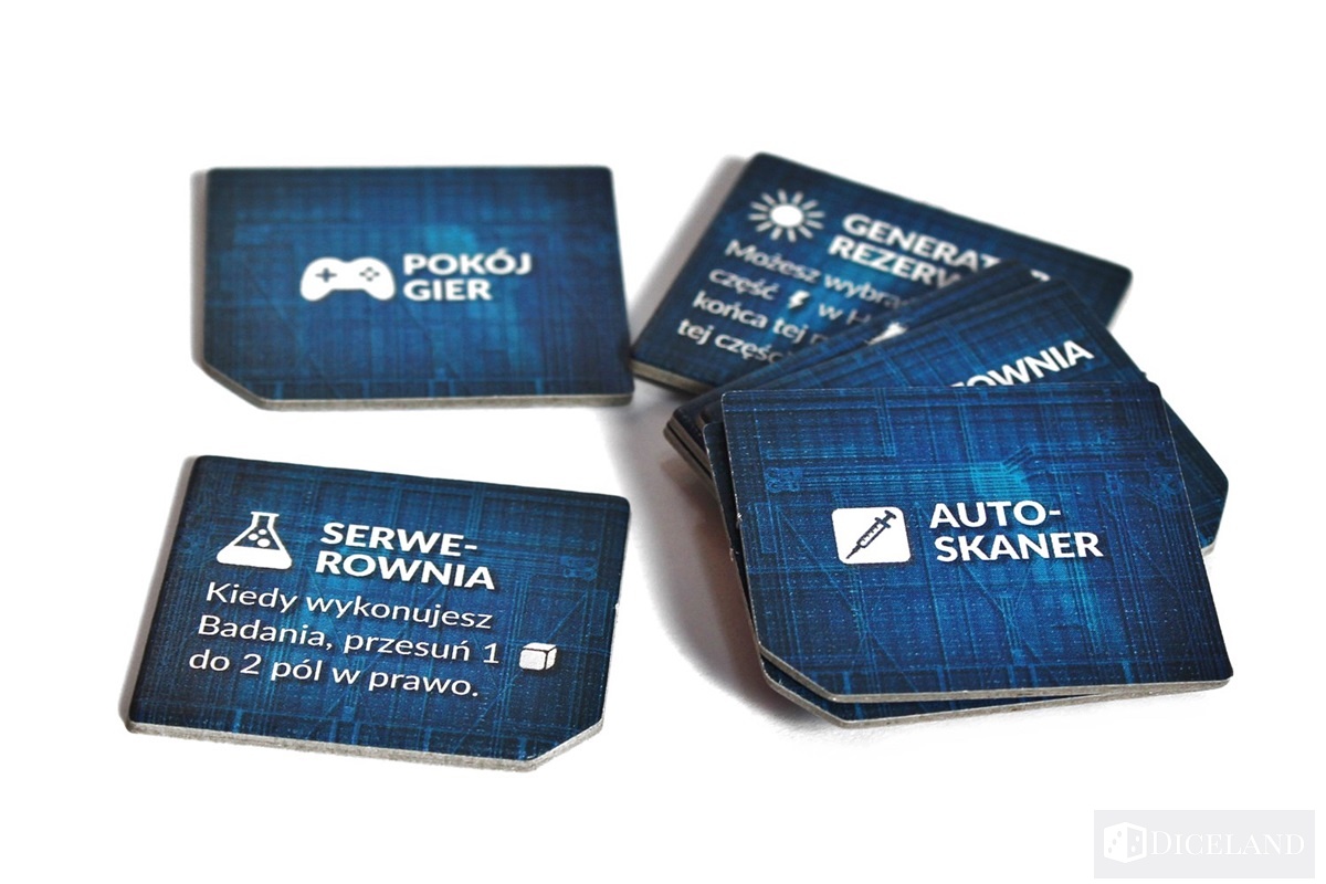 Kolejna grupa kafli i żetonów będzie wpływać na postacie lub pomieszczenia w naszej stacji. Będą to: kafle przestoju, ulepszeń oraz żetony stanów i modyfikatorów.