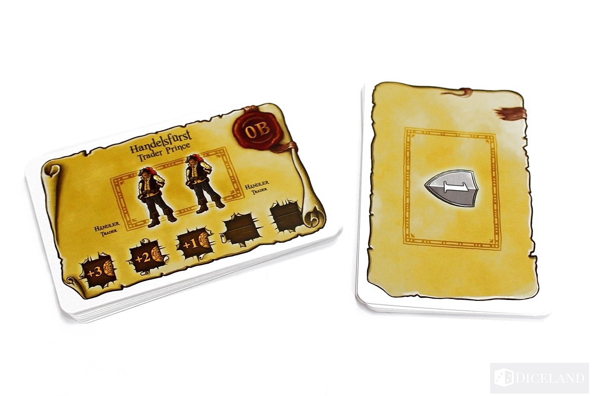 Wtasowując karty z dodatku do podstawowej talii, nie liczcie, że będzie Wam się chciało rozdzielać je na koniec gry. Zmiany są tak delikatne, że nawet nowi gracze nie zorientują się, że grają w talię składającą się z dwóch zestawów. Spokojnie możemy się tym nie trudzić. Co ważniejsze, cała talia mieści się do pudełka podstawowej wersji gry! Dodatkowy plus dla twórców – zamiast dwóch pudełek, na wakacje spakujemy tylko jedno. Jedynie karty kontraktów i kostki należy przechowywać w dedykowanym im opakowaniu.