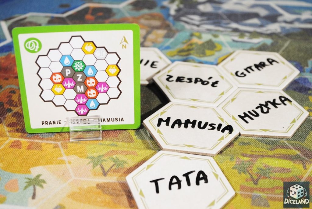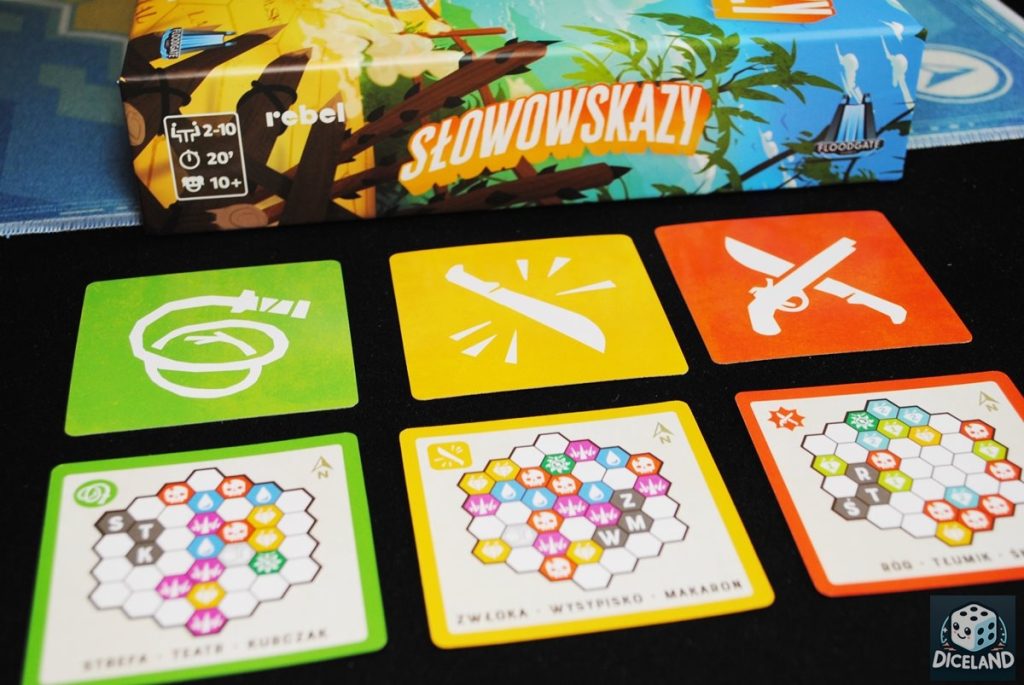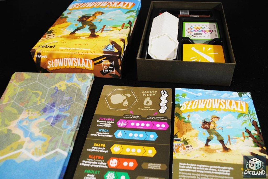 Słowowskazy to powiew świeżości wśród gier wykorzystujących tworzenie słów i skojarzeń między nimi. Mamy tutaj wyczuwalny przygodowy klimat, który zachęca graczy do eksplorowania wyspy. Podczas rozgrywki możemy natrafić na emocjonujące przeszkody, które będą miały znaczący wpływ na dalszą rozgrywkę. Każde skojarzenie jest ważne, szczególnie jeśli chcemy naprowadzić członków naszej drużyny na konkretne pole. Musimy patrzeć całościowo i starać się wymyślać hasła, które nie skojarzą się z tymi, do których nie planujemy dokładać kafelków. Często jest to dość problematyczne, gdyż w pewnym stopniu hasła znajdujące się na planszy są ze sobą związane. Zdecydowanie najtrudniejsze zadanie ma Przewodnik, który musi opracować bezpieczną trasę umożliwiającą zdobycie skarbów, ewentualnej wody, czy amuletu. Niekiedy jeden kafelek ma kilka wolnych miejsc naokoło, drużyna musi więc zadecydować, gdzie do dołożyć. Nawet wymyślenie idealnie pasującego słowa tutaj nie pomoże – musimy liczyć na szczęście. Mnie akurat ten aspekt kuszenia losu się spodobał, gra stała się dzięki temu bardziej emocjonująca.