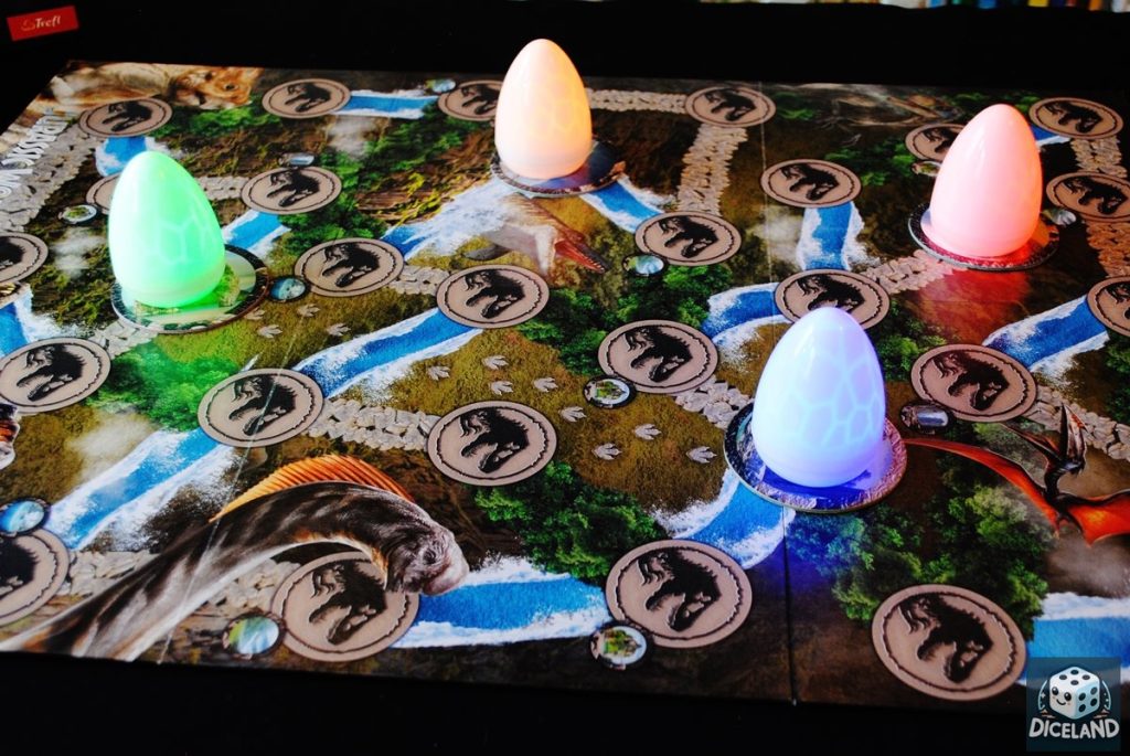 Magajaja: Jurassic World to gra, która idealnie sprawdzi się dla miłośników dinozaurów. Poruszanie świecącymi jajami to świetna zabawa i przede wszystkim doskonały trening pamięci. Zapamiętanie, które jajko ma jaki kolor, wcale nie jest takie proste i wymaga sporej spostrzegawczości i koncentracji. Duże znaczenie ma również zagrywanie kart ruchu w odpowiedniej kolejności. W jednej udanej turze możemy doprowadzić jajo do gniazda, musimy wykazać się jednak logicznym myśleniem oraz… mieć nieco szczęścia. Karty dobieramy losowo, więc może się zdarzyć, że nie trafimy akurat na takie, jakich w danym momencie potrzebujemy. Jaja są jednak 4, więc zwykle w każdej rundzie mamy możliwość ruchu.