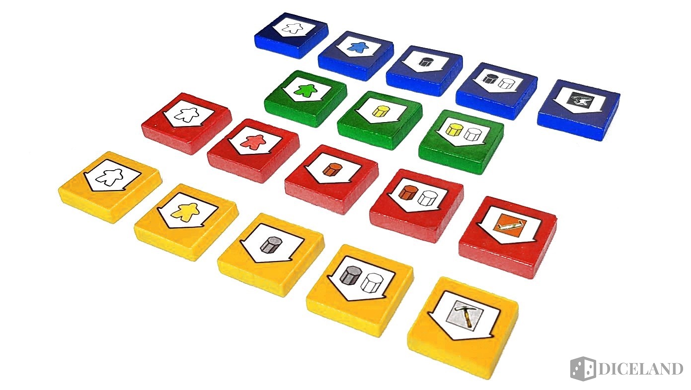Dotychczas, gdy ulepszaliśmy jakiś budynek, musieliśmy wysłać robotnika na pole z transportem i zapłacić odpowiednią liczbę surowców za odwrócenie płytki na drugą stronę, dzięki czemu na koniec gry często otrzymywaliśmy za ten kafel więcej punktów oraz zyskaliśmy bardziej rozbudowaną akcję. Teraz mamy możliwość ponownej rozbudowy tego samego kafla, która podwoi nasze punkty. Każdy znacznik ma zupełnie inny koszt, który musimy ponieść, aby przeprowadzenie danej akcji w ogóle było możliwe. Jednak kolor usprawnienia, który wybierzemy, ma tutaj bardzo duże znaczenie, ponieważ zgodnie z zasadą spójności kolorów, na tę płytkę będziemy mogli wysłać jedynie robotników w pasującej barwie.