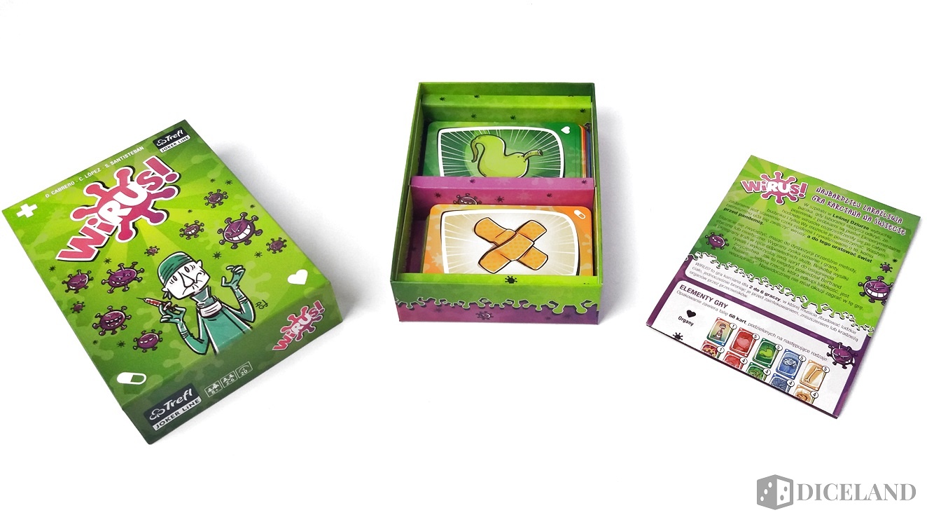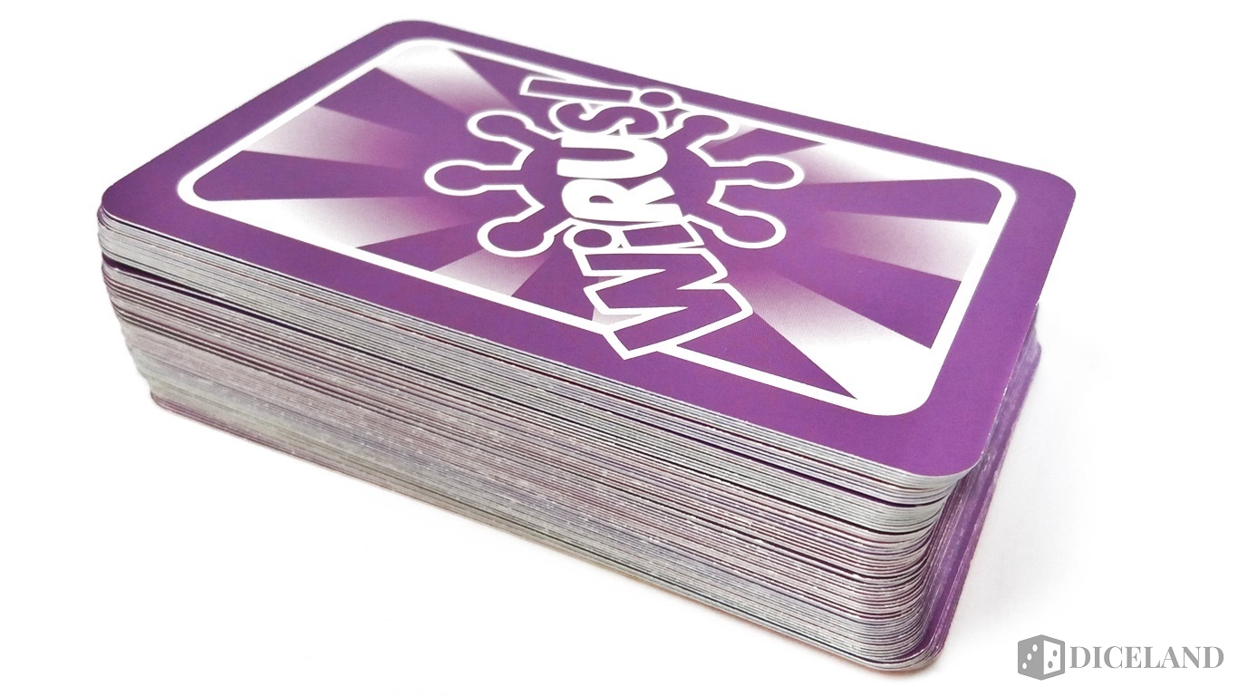 Wirus! to bardzo dobrze wykonana i ciekawie ilustrowana gra karciana. Wszystkie elementy, czyli głównie karty mieszczą się w malutkim, kompaktowym pudełeczku, które możemy zabrać ze sobą dosłownie wszędzie. Karty, dzięki wyraźnej kolorystyce zyskują na czytelności, dzięki czemu nigdy nie pogubimy się na stole.