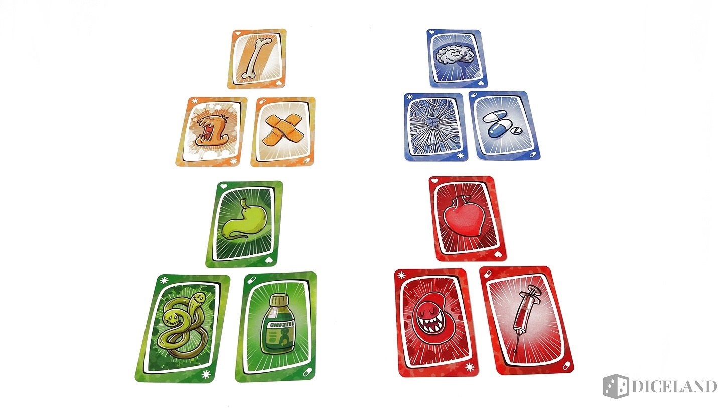 Jeśli na jakimś organie znajduje się pojedyncza szczepionka, wtedy wirus sprawia, że taką szczepionkę musimy odrzucić. Działa to w obie strony i analogiczna sytuacja następuje, gdy nasz organ został zarażony tylko jednym wirusem. W grze znajdziemy również wielokolorowe karty wirusów, szczepionek, czy też organów, które możemy zagrywać w dowolnej sytuacji.