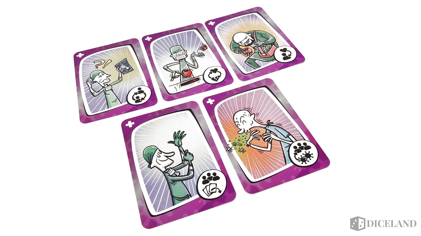 - błąd lekarski: zdecydowanie najśmieszniejsza karta, która pozwala na zamianę całego ciała, włącznie z wszystkimi organami, wirusami czy też szczepionkami z innym graczem.