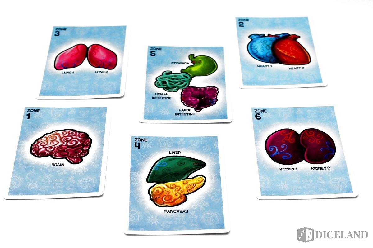 Podczas rozgrywki używać będziemy również kilku rodzajów znaczników. Najważniejszym dla nas będą żetony własnych wirusów. Są to niejako jednostki, które będziemy mogli umieszczać na planszy, zdobywając coraz więcej terenu. Żetony punktacji stref określą, które rejony organizmu będą szczególnie istotne. Z kolei żetony służące do oznaczenia powstałego w narządzie kryzysu, czekać będą na swoją chwilę w przeznaczonym dla nich miejscu na planszy