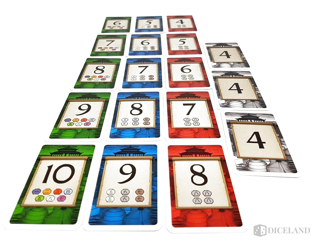 Zdobyte karty lampionów staramy się zebrać w zestawy: czwórki, 3 pary oraz 7 różnych. Zebrane zestawy możemy wymienić na punkty. Warto w tym momencie zaznaczyć, że im szybciej wymienimy nasze lampiony, tym więcej punktów za nie otrzymamy. To oznacza, że pierwsza osoba, która zbierze 7 różnych kolorów lampionów, otrzyma kartę talentu o wartości 10 punktów, natomiast następna w kolejności już tylko 9.
