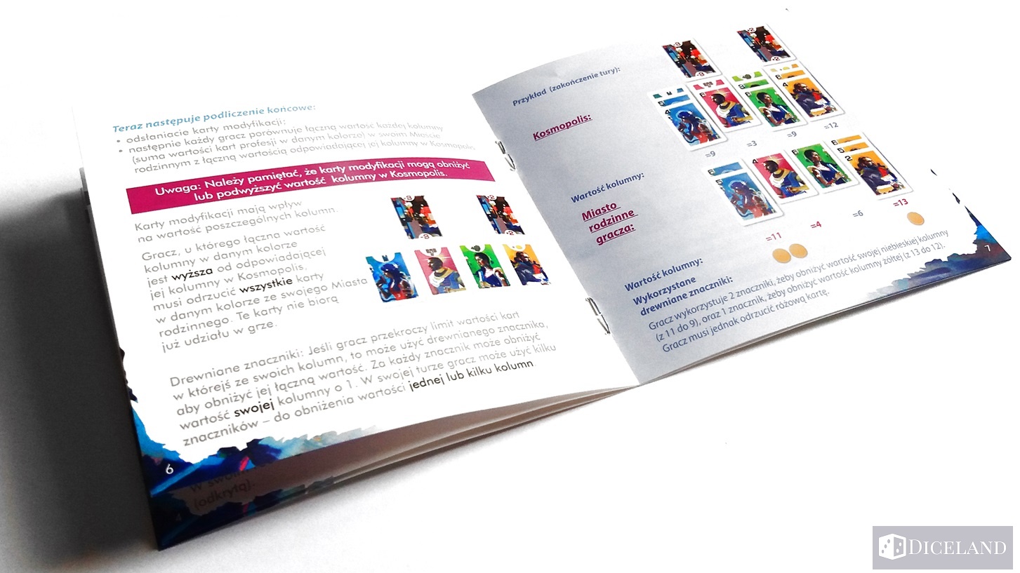 Sama instrukcja jest napisana na 12 stronach i zawiera wiele licznych przykładów z rozgrywki, zatem przejście przez zasady nie powinno stanowić dla nikogo żadnego problemu.