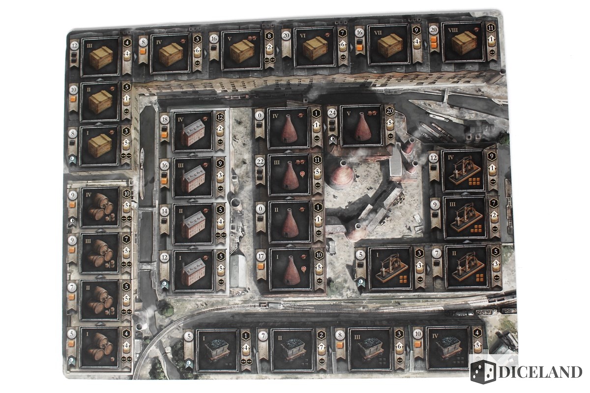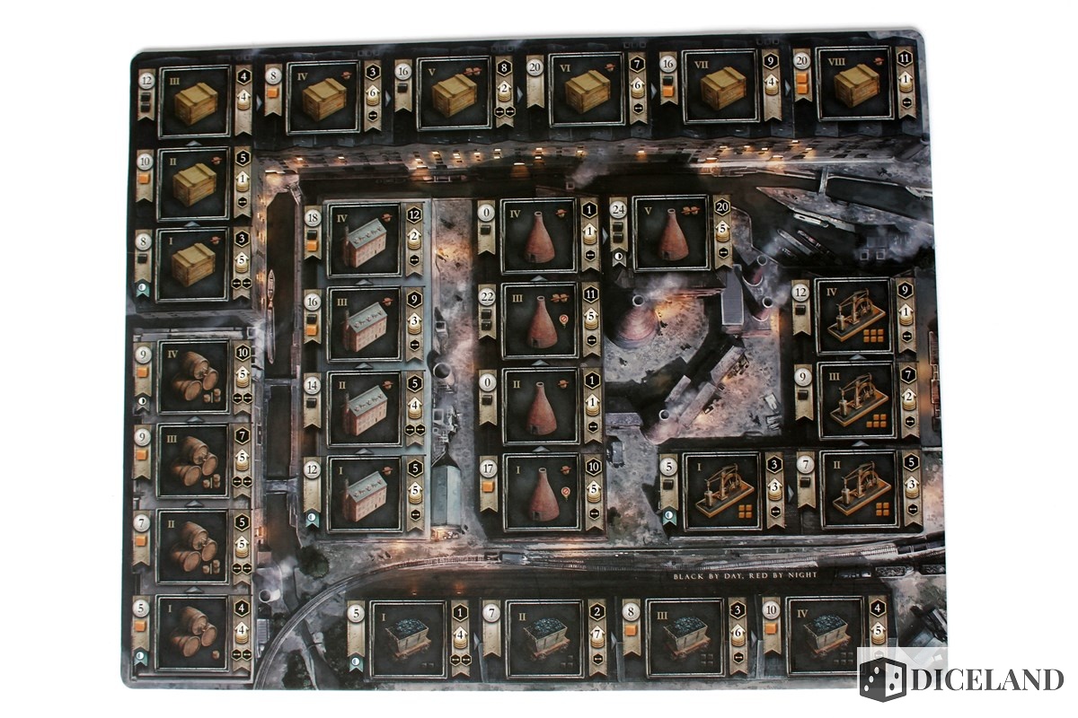 Oczywiście, aby budowa mogła się odbyć, trzeba ponieść pewne koszty. Czasami wystarczy przeznaczyć na ten cel odpowiednią ilość gotówki, niekiedy jednak będziemy zobligowani do dostarczenia węgla lub żelaza. Żetony budynków mogą od razu dostarczać określony surowiec lub też produkować towary, które będziemy musieli sprzedać. Co ważne wspomniane surowce nie będą służyły jedynie nam. Inni gracze również będą mogli z nich skorzystać, a niekiedy będą do tego zmuszeni, jeśli tylko powstała sieć transportowa im na to pozwoli. Ten ciekawy mechanizm stara się odwzorować na planszy zależność popytu i podaży. Wszystko dlatego, że nasze fabryki dostarczą nam punktów dopiero w momencie, gdy będą puste!