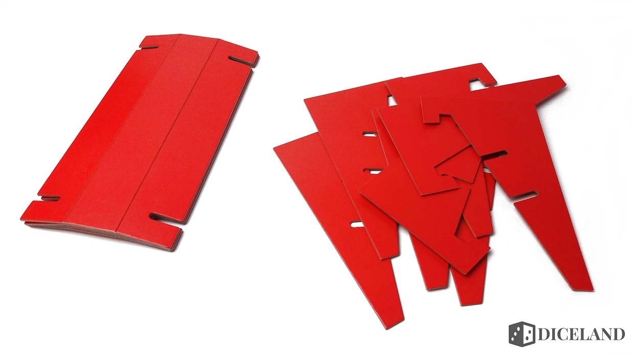 W pudełku znajdziemy również solidne sztalugi, które przed każdą rozgrywką będziemy musieli złożyć. W instrukcji nie znalazłem informacji jak to prawidłowo zrobić, ale nie sprawiło mi to większych problemów. Umieścimy na nich wcześniej wspomniane obrazy. Pełnią one jeszcze jedną istotną funkcję. Podczas rozgrywki zakrywają, to co będziemy zapisywali na kartce w tajemnicy przed innymi graczami. Bardzo dobre rozwiązanie.