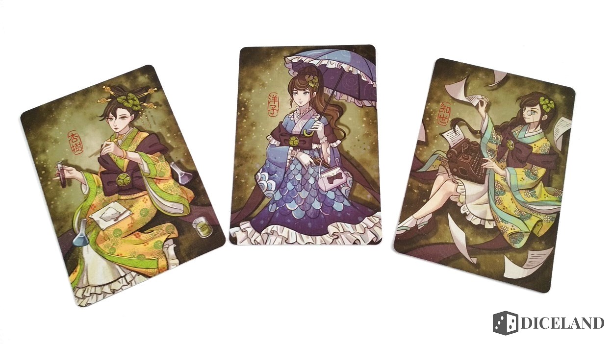 Najważniejszym elementem rozgrywki jest niewielka plansza do gry. Znajdują się tam budynki w różnych kolorach, co ma ogromne znaczenie podczas zmagań z naszym przeciwnikiem. Tereny podzielono na dwa obszary (dwie strony konfliktu): Oniwaban oraz Rząd Cesarza Meiji, co kompletnie nie ma znaczenia dla rozgrywki. Plansza prezentuje się schludnie, jest czytelna i wydaje się trwała. Dużą zaletą są jej rozmiary, gdyż nie zajmuje ona dużo miejsca, a to sprawia, że możemy zagrać niemalże wszędzie.