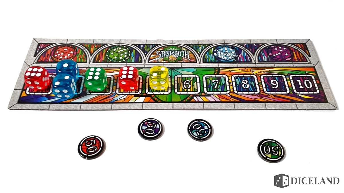 Jak zatem wygląda tura gracza? Nic skomplikowanego. Losujemy z woreczka tyle kości, ilu graczy bierze udział w rozgrywce, mnożymy przez dwa i dodajemy jeszcze jedną dodatkową kosteczkę. Przykładowo, jeśli w grze bierze udział trójka uczestników, wtedy należy wyjąć z woreczka i rzucić siedmioma kośćmi. Następnie każdy z grających, począwszy od gracza rozpoczynającego, wybiera z dostępnej puli po jednej kości i umieszcza ją zgodnie z zasadami na swoim witrażu. Gdy tura dotrze do ostatniego gracza, zmieniamy kierunek i ponownie pobieramy po jednej kości. Na koniec powinna pozostać jedna kość, którą umieścimy na torze rund. Dzięki temu rozwiązaniu będziemy wiedzieli, ile rund pozostało do końca trwającej partii.