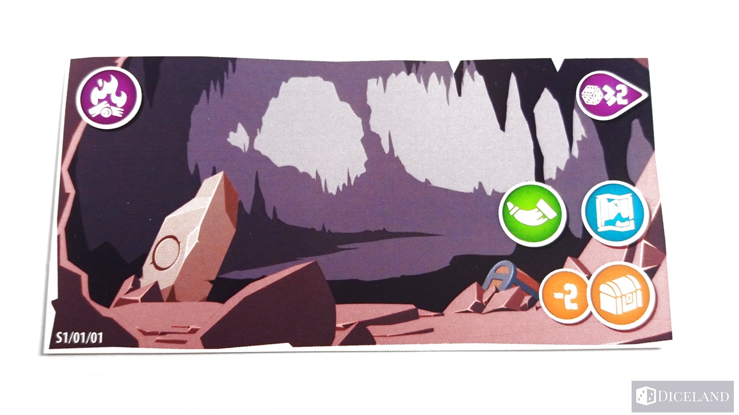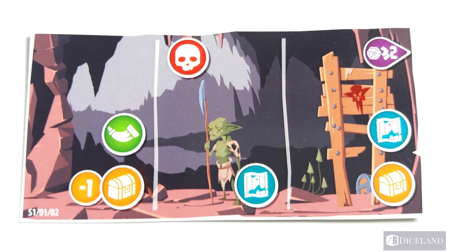 - Po udanej walce przechodzimy do wykonania akcji lub odpoczynku. Jeśli zdecydujemy się na wykonanie akcji, to dokonujemy wyboru tylko jednej z nich (polowanie, wyprawa, przeszukanie) dzięki czemu możemy ulepszyć nasze statystyki, zyskać prowiant, doświadczenie i życie, ale też je stracić, bądź napotkać jakiegoś przeciwnika. Jeśli zrezygnujemy z wykonywania akcji możemy poświecić jeden prowiant, by odpocząć i odzyskać wszystkie utracone kości bohatera. Kości te służą nam do przemieszczania się miedzy kafelkami, do toczenia walk z potworami, a także do akcji na kafelkach, a że jesteśmy w posiadaniu tylko czterech kości, to bardzo szybko je tracimy i musimy je jakoś odzyskiwać. Krok po kroczku schodzimy coraz niżej, napotykamy coraz to groźniejsze bestie, zyskujemy coraz cenniejsze skarby, a w końcu docieramy do pewnej komnaty, w której to zmierzymy się z wielkim bossem. Jeśli uda nam się go pokonać – wygrywamy.