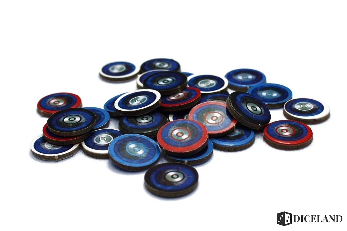 Moja wersja gry opatrzona została naklejką deluxe i informacją o znajdujących się wewnątrz rozszerzeniach. Są nimi 3 żetony pozwalające nam jednorazowo zignorować jedną z obowiązujących zasad. Sprawiają one, że gracze otrzymują dodatkowe opcje oraz możliwość wyrwania się z niekorzystnej sytuacji. Wśród dodatków znajdziemy także dwa żetony wirów, które położone na dwóch wybranych kaflach, spowodują ich obrót o 60 stopni na początku każdej rundy. O Ile pierwsze z wymienionych elementów nie urzekły mnie jakoś specjalnie (ot dają więcej możliwości i nieco przedłużają rozgrywkę) o tyle pomysł wprowadzenia dwóch obrotowych elementów okazuje się zadziwiająco sprytny. Nie utrudnia bardzo rozgrywki, jednak dodaje jej nieco uroku.