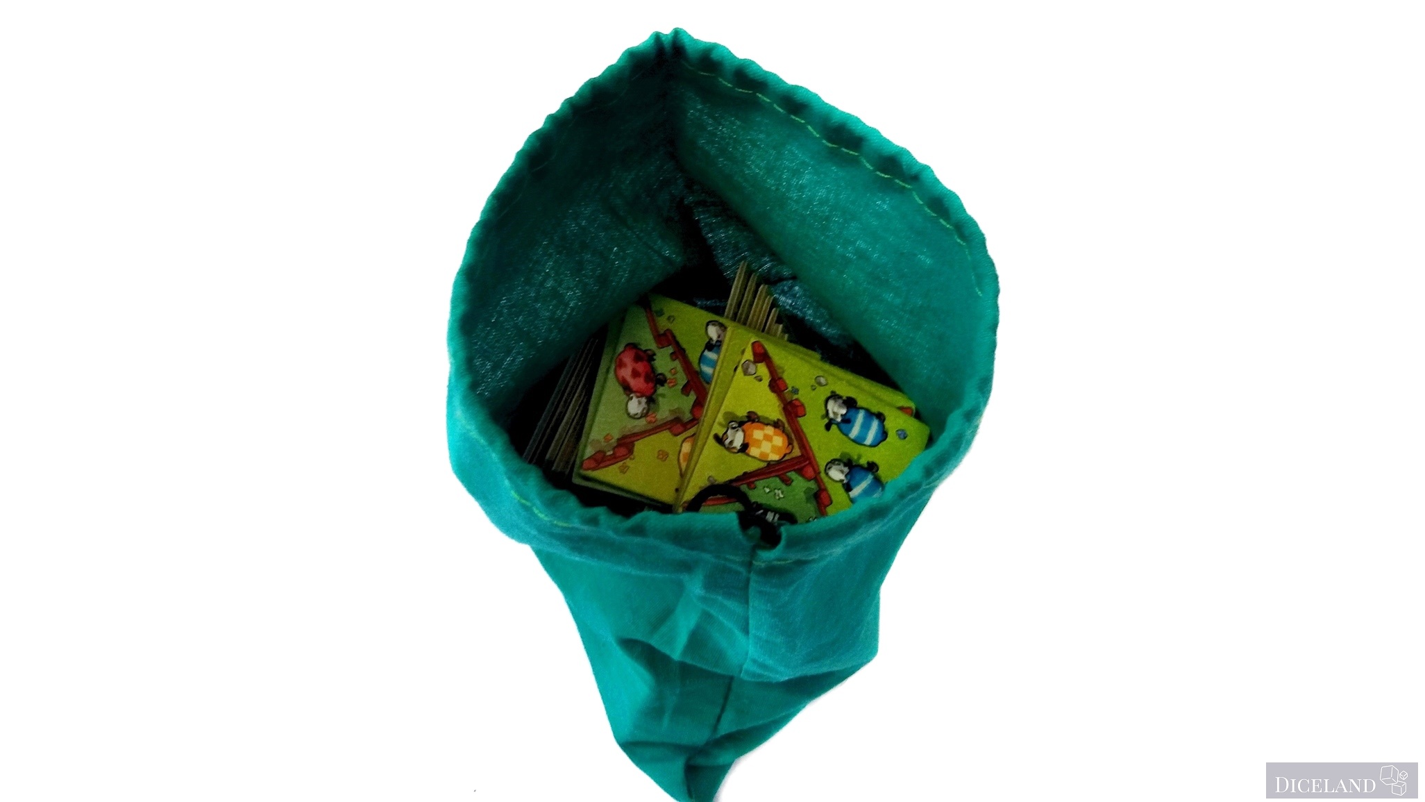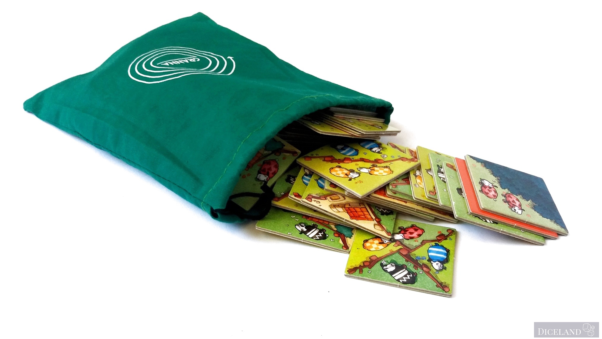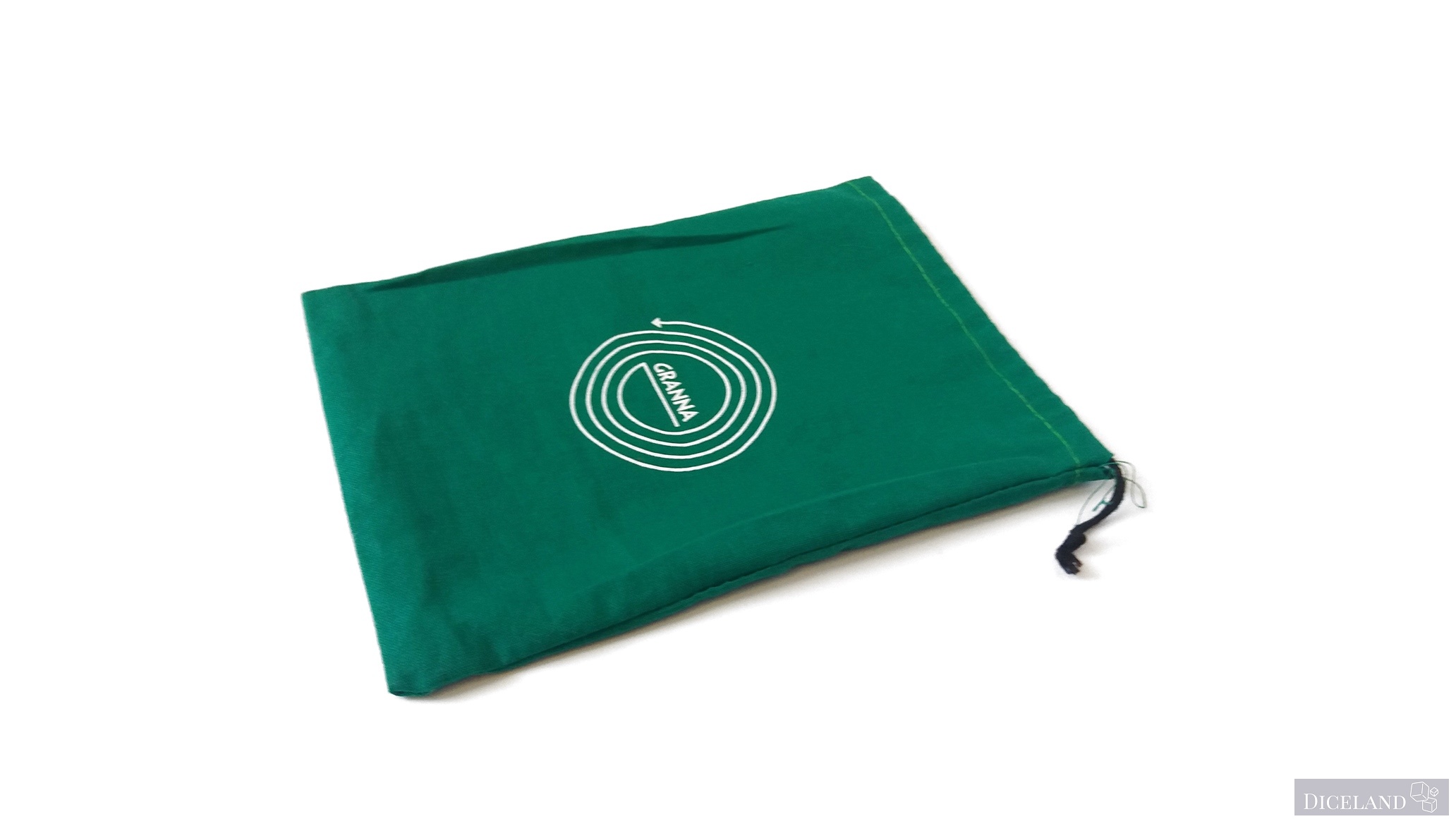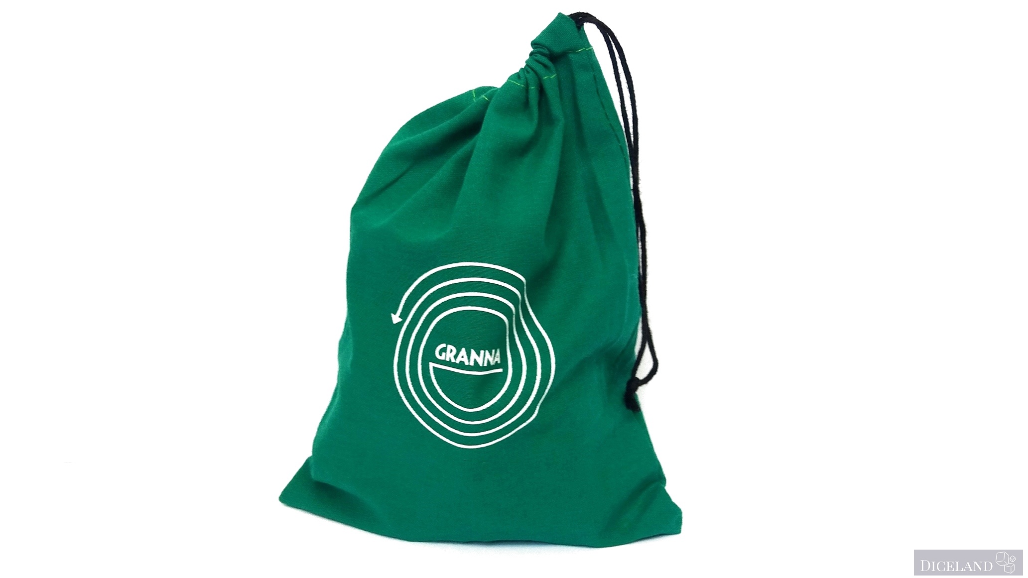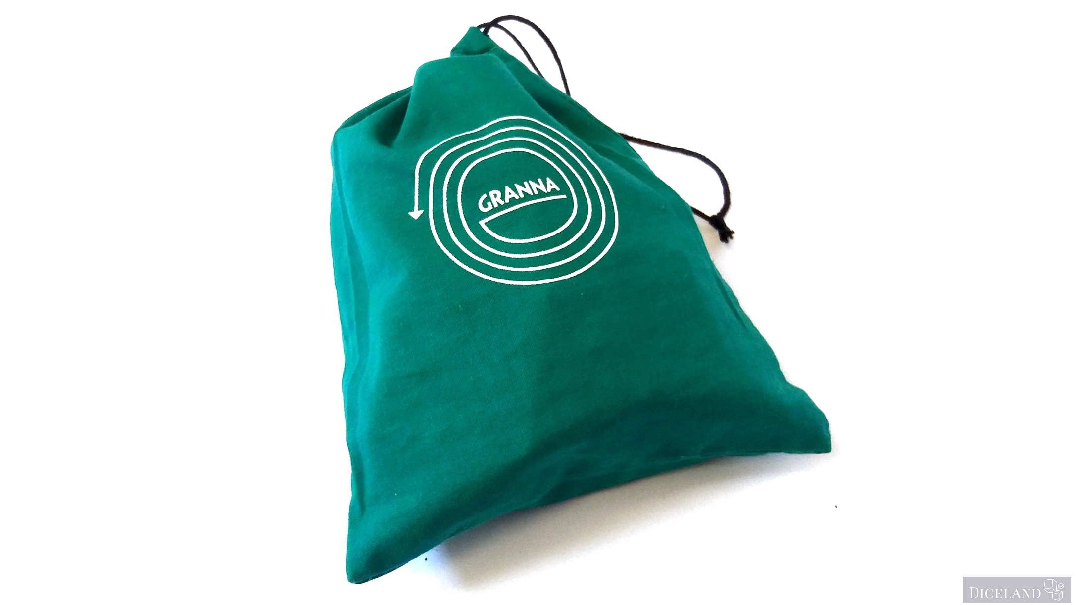 W pudełku znajdziemy również dobrej jakości zielony woreczek z materiału z dużym napisem „Granna” na nim. Woreczek służy do losowania kafelków w czasie rozgrywki i w tej roli sprawdza się przeciętnie, mógłby być odrobinę większy – pozwoliło by to nam na większą swobodę losowania, a tak po włożeniu ręki nie za bardzo mamy taką możliwość. Problem ten występuje głównie na początku gry, gdy woreczek jest jeszcze pełen kafelków. Odkładając grę na półkę musimy trzymać kafelki luźno w pudełku, gdyż po włożeniu ich do woreczka, pudełko nam się po prostu nie zamknie.