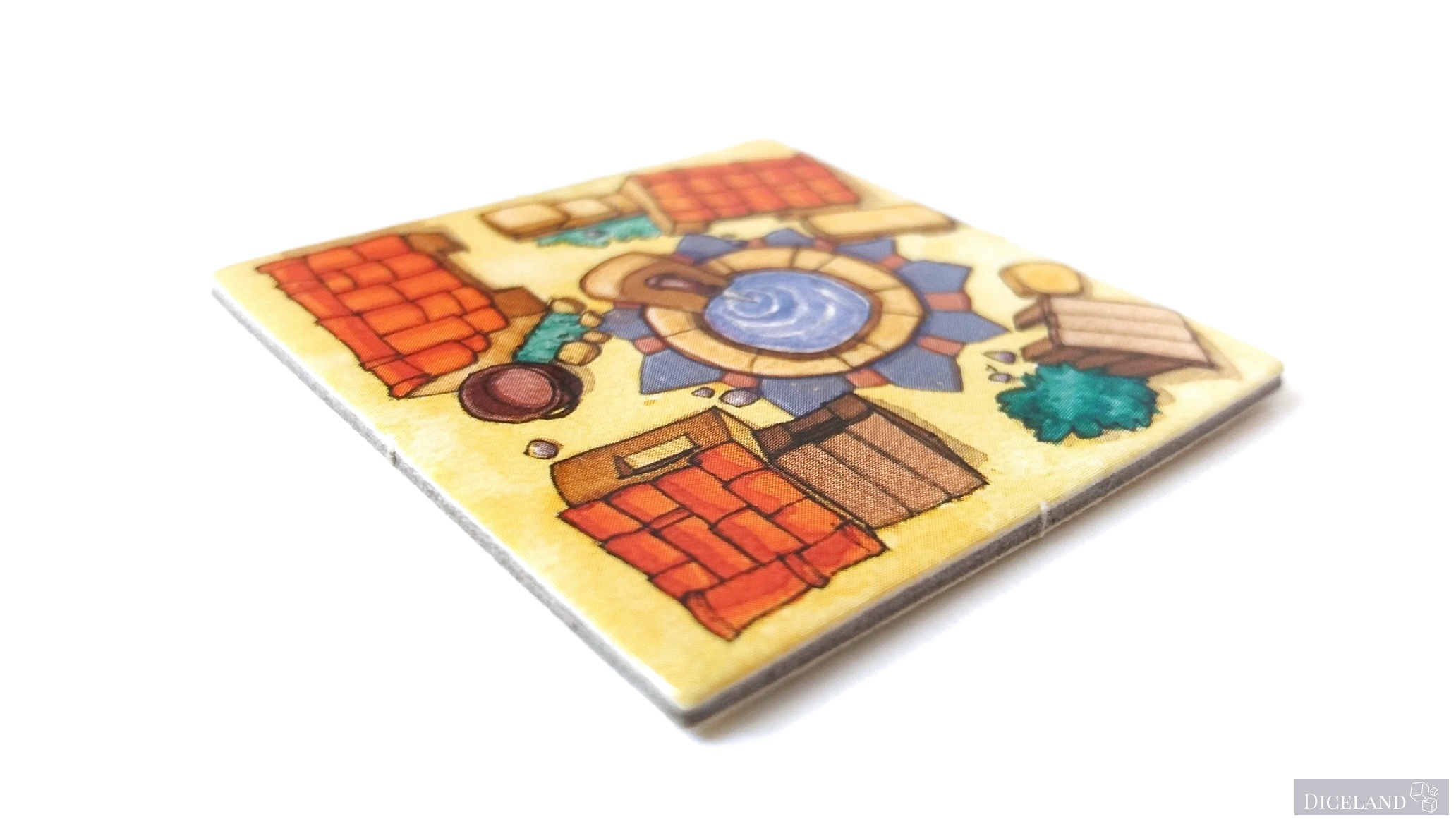 Głównym elementem gry są kafelki, jest ich aż 77. Główną ich zaletą jest to, że są dwustronne, a każda ze stron to inny wariant kafelka, no może oprócz 4 kafelków, które służą jako znaczniki gracza i jednego kafelka startowego wioski.