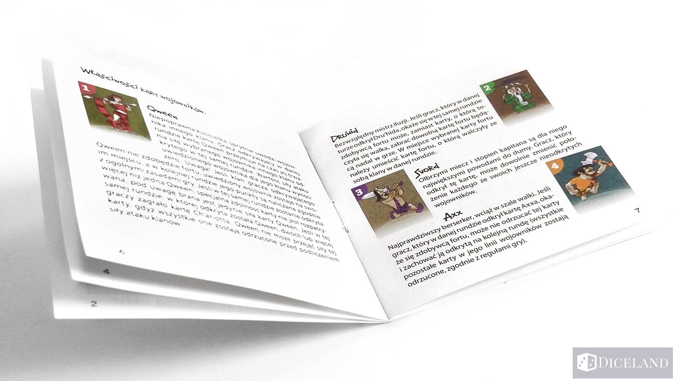 Każdy gracz otrzymuję talię kart wybranego klanu. Wojownicy mają swoje zdolności i talenty, które trzeba umiejętnie wykorzystać przy planowaniu ruchu. Piękna Qween uwodzi przeciwników, Axx to najprawdziwszy berserker, Druid jest mistrzem iluzji, Svord nie bez powodu dźwiga olbrzymi miecz. Każdy ma swój talent.