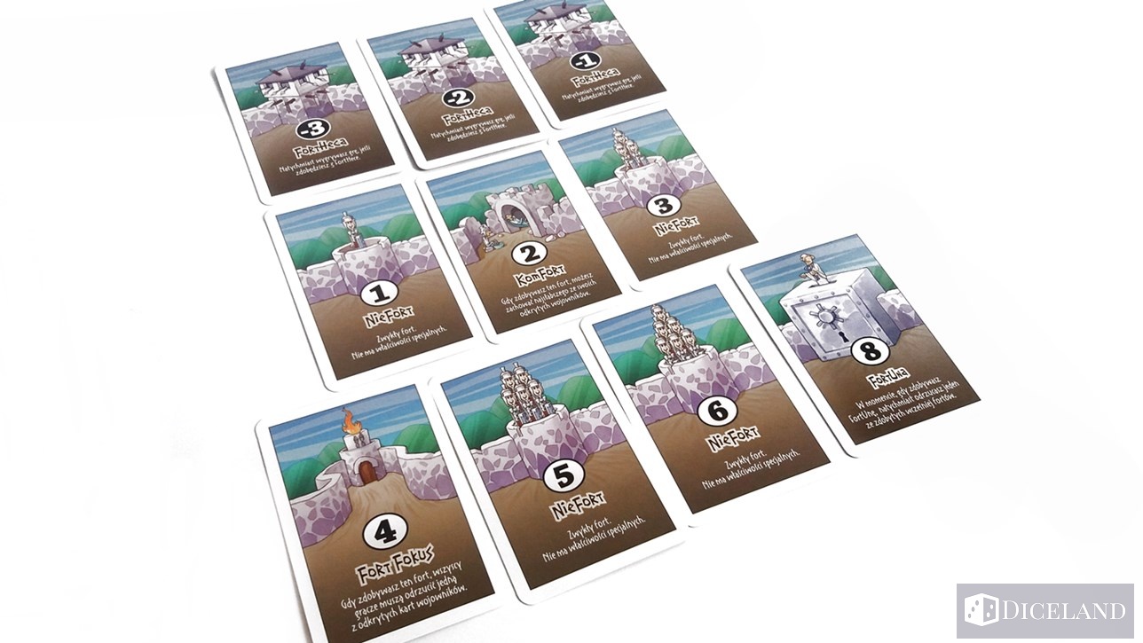 W identyczny sposób przeprowadzamy kolejne dwie rundy, a następuje podliczanie punktów. Liczymy punkty znajdujące się na kartach fortów. Osoba z największym wynikiem – wygrywa.