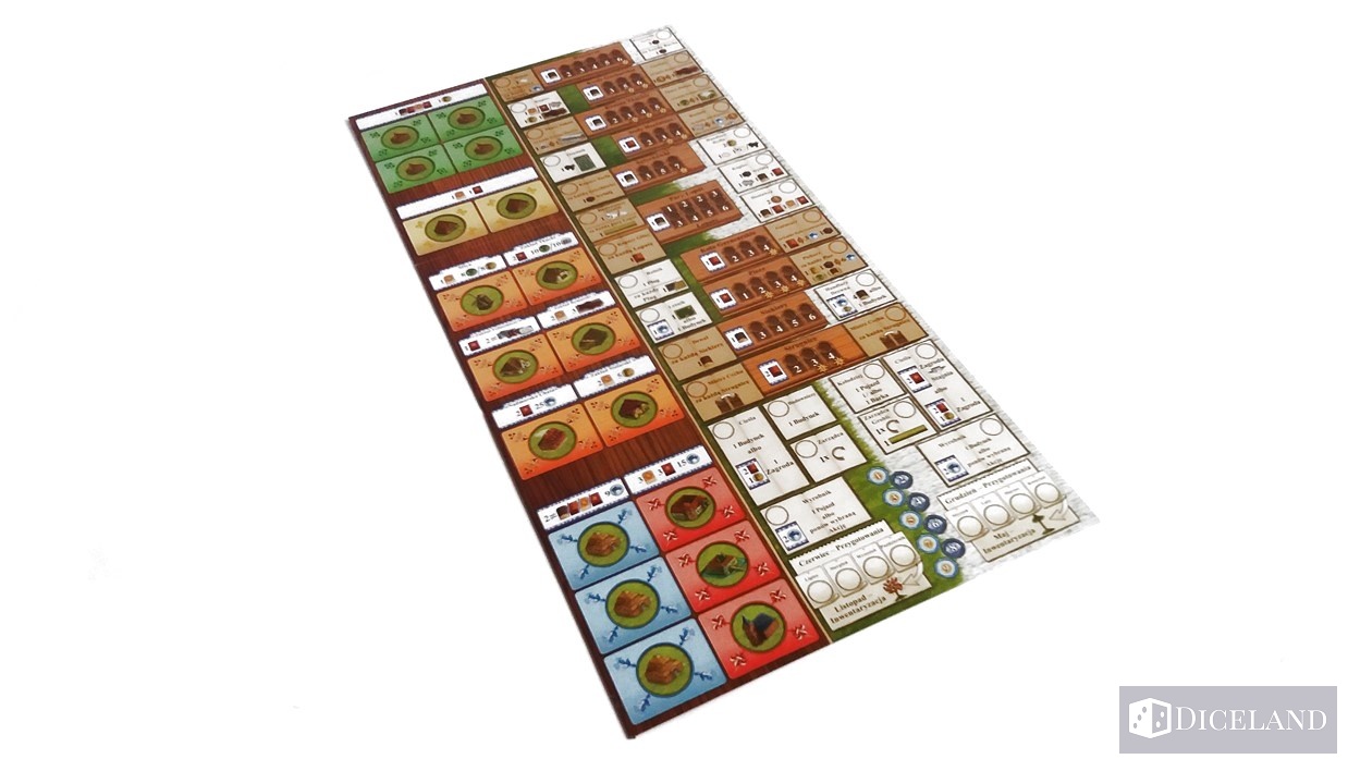 Oprócz planszy głównej, znajdziemy również składaną planszę zasobów, której zadaniem jest ich uporządkowanie (nie jest ona konieczna do gry), ale cieszy fakt, że jest.