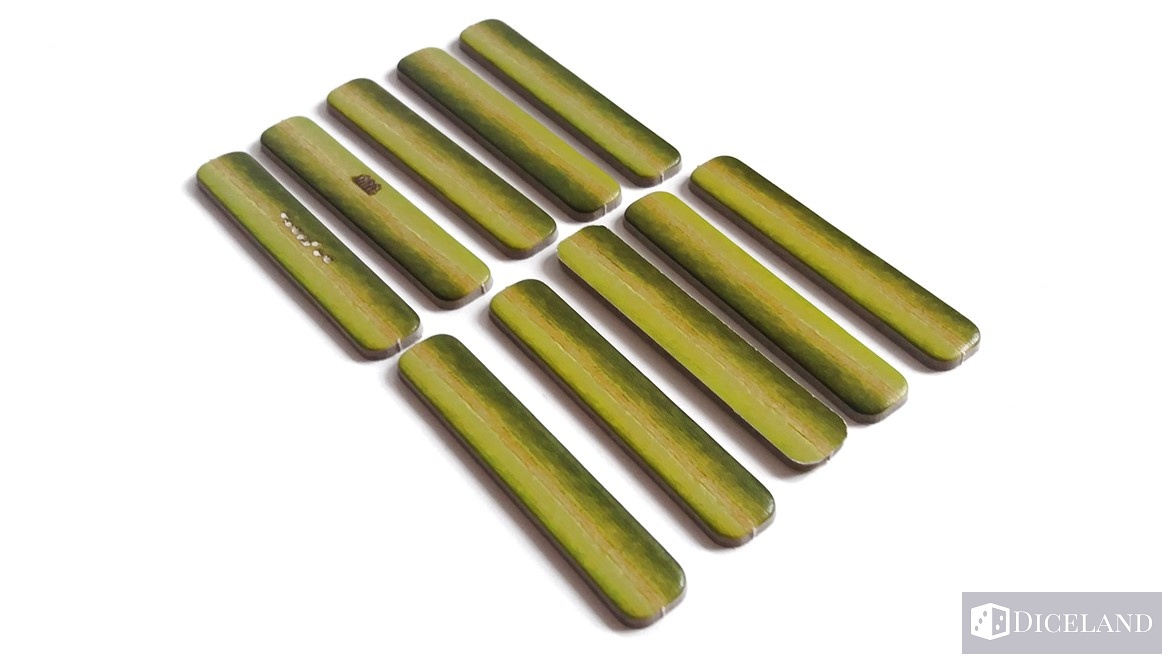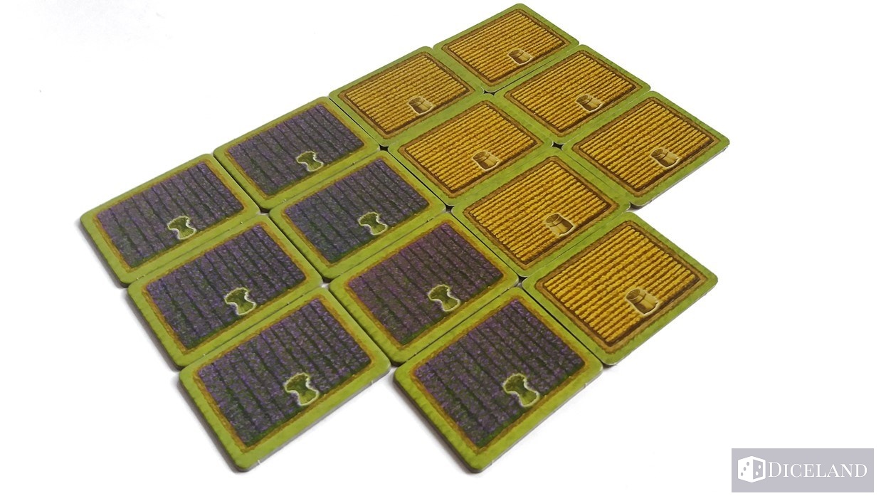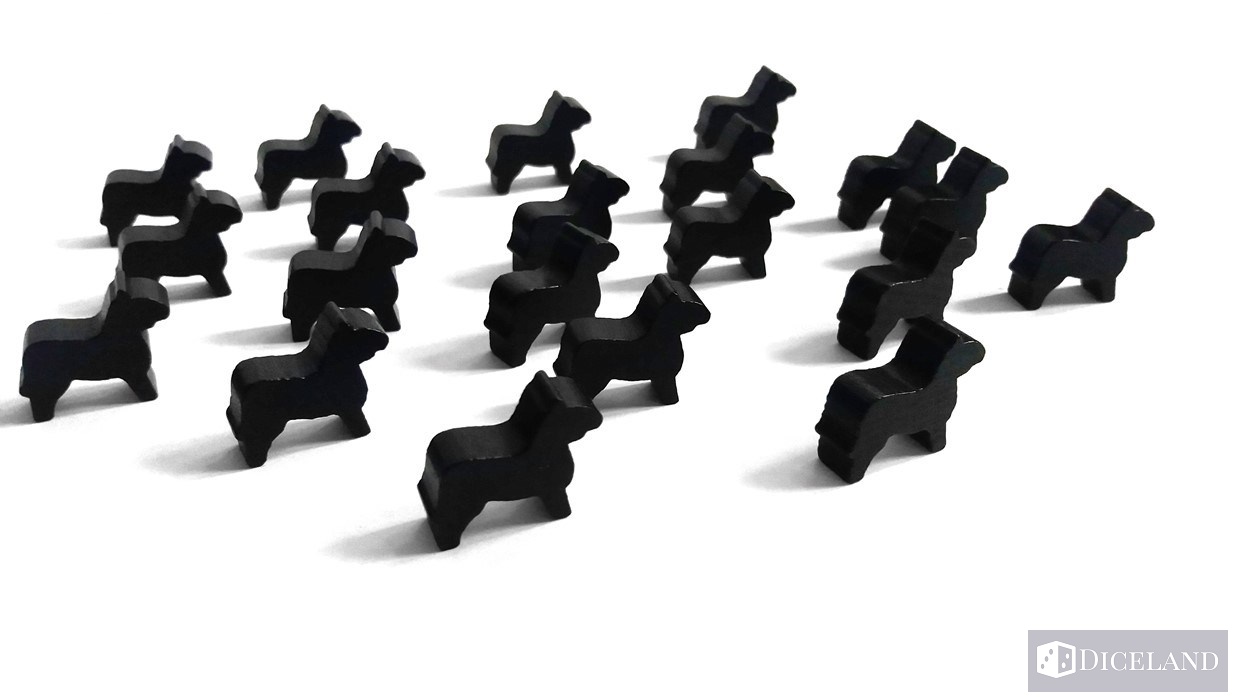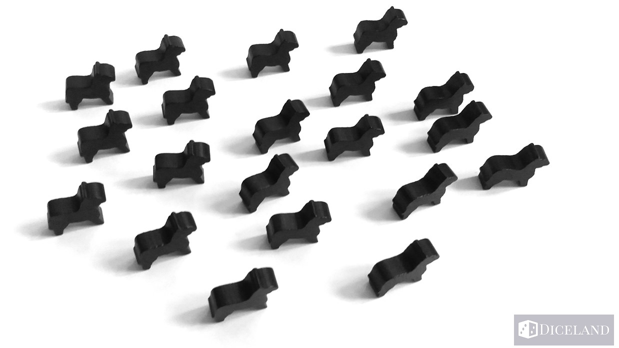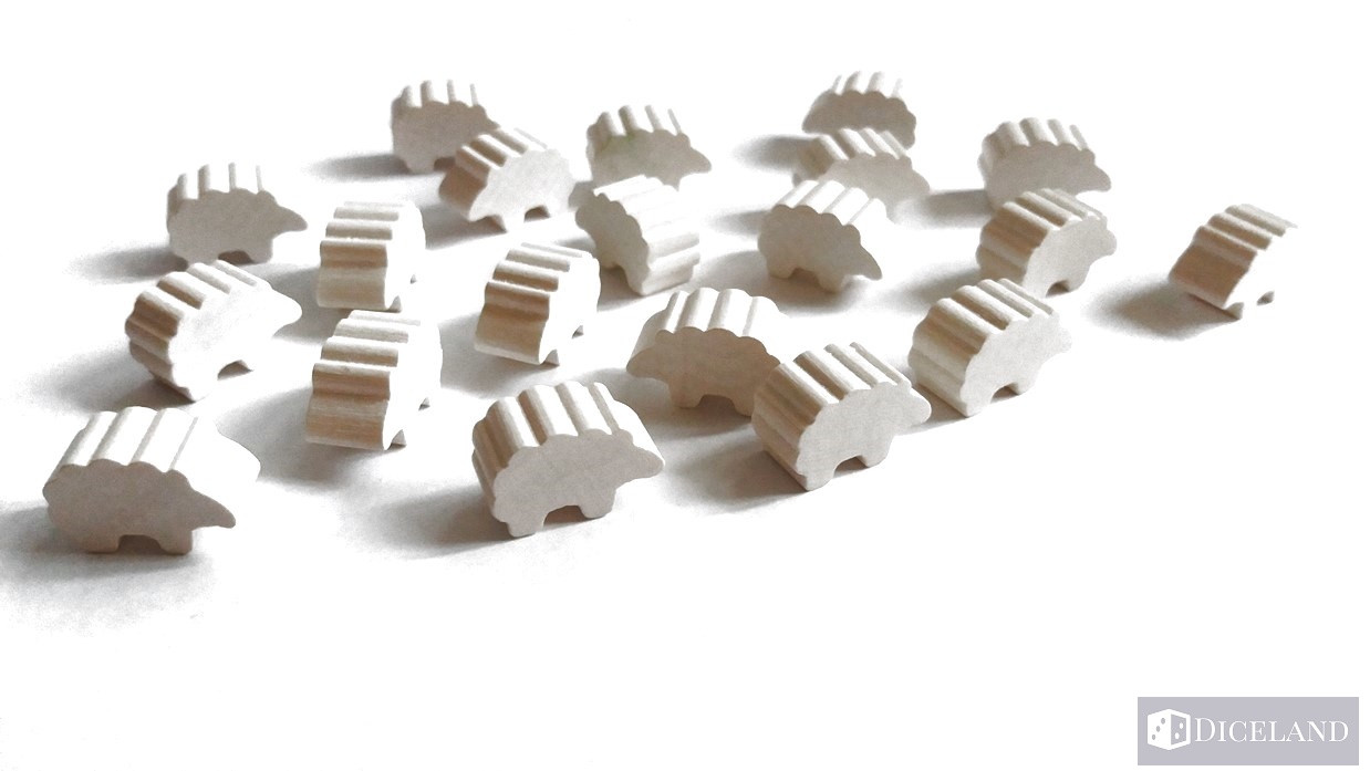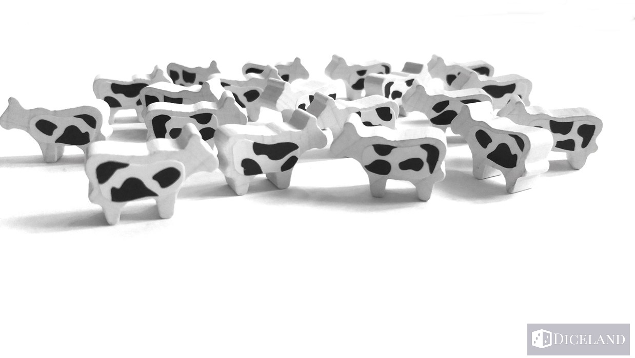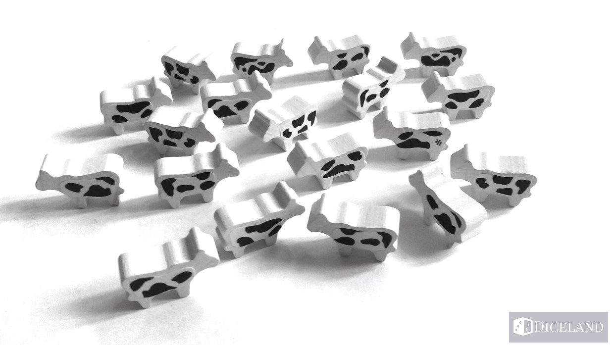 Po dwadzieścia drewnianych zwierzątek: krowy, konie i owieczki. Do krów zostały dołączone specjalne naklejki, które ze zwykłych białych krów, przemieniają je w ich łaciaty odpowiednik, oczywiście cieszy to oko. Otrzymujemy również 40 drewnianych znaczników torfu.