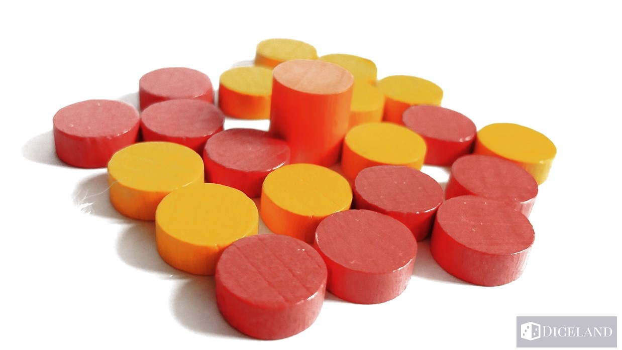 Dwustronne żetony gliny, którą możemy zamienić w cegłę, oraz drewna, które zamieniamy w deski.