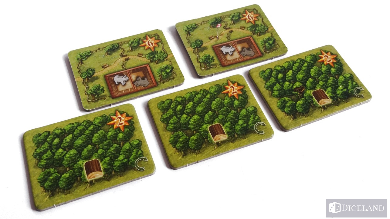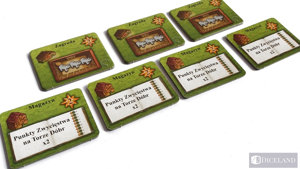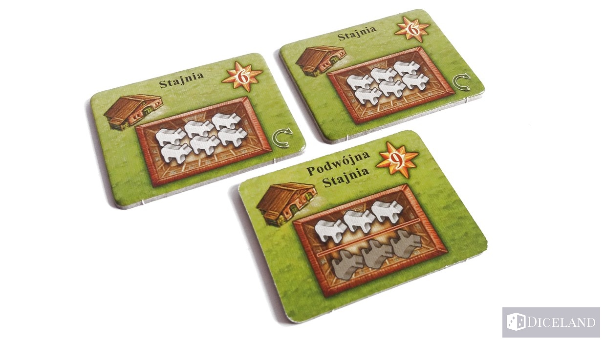 - zwierzęta na planszy włości, punktowanie za nie jest bardzo ciekawe – najliczniejsza grupa zwierząt to 0 punktów za każde zwierzę, grupa środkowa to 1 punkt za każdego zwierzaka, a zwierzęta, które stanowią najmniejszą grupę są warte 2 punkty za każde.