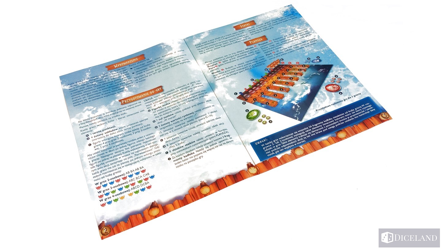 Czas oczekiwania na swoją kolej jest zależny od tego, w ile osób gramy i jak ustawiliśmy nasze figurki wikingów w kolejce. Z reguły nie trwa to długo, ale zdarzają się małe przestoje, które jednak nie mają wpływu na negatywne odczucia z gry. W grze przez cały czas coś się dzieje i w trakcie tury innych graczy, możemy jedynie obserwować duże zmiany zachodzące na łodziach. Tak naprawdę rozmyślanie nad swoim ruchem, możemy zacząć dopiero w momencie, gdy przyjdzie nasza kolej. Pudełkowy czas gry mieści się między od 30 do 60 minut i uważam, że tylko pierwsze rozgrywki mogą sięgać tej pełnej godzinki. Natomiast w przypadku kolejnych partii idzie znacznie szybciej, a samo rozłożenie gry nie trwa zbyt długo.