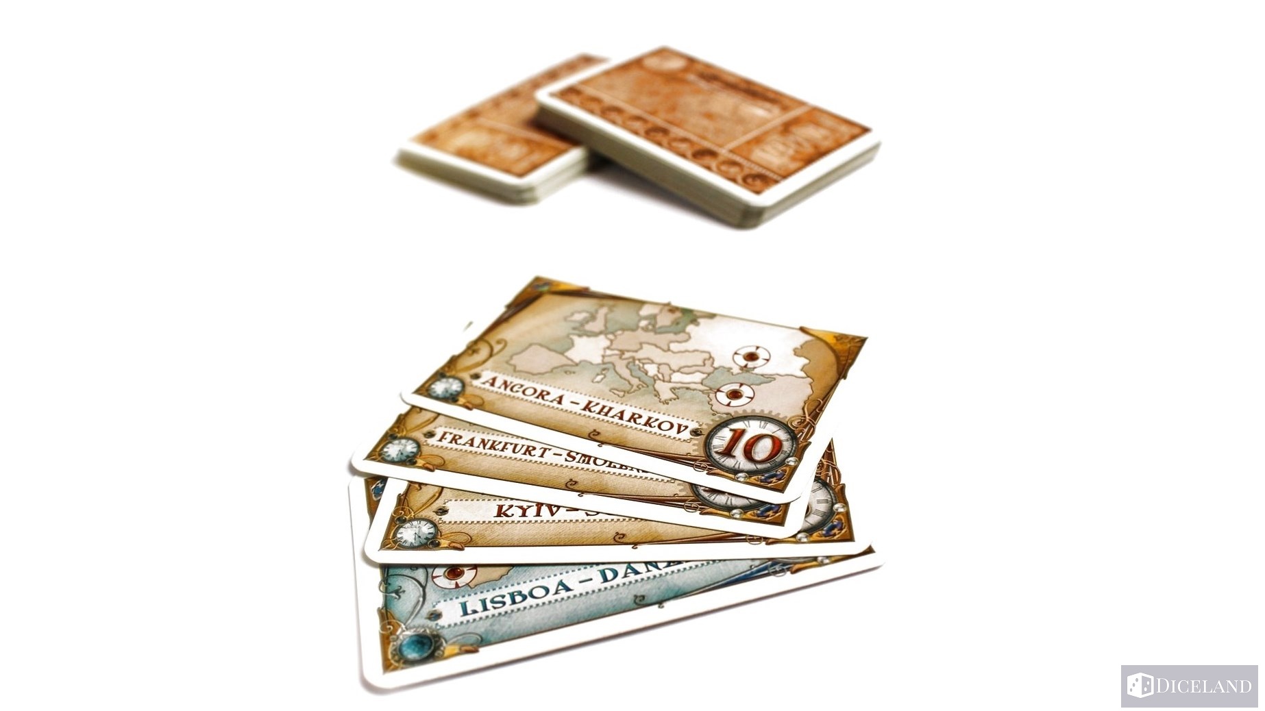 Z grą otrzymujemy również dwie talie kart – jedną przedstawiającą wagony w różnych kolorach i tęczowe lokomotywy oraz drugą z biletami określającymi cele podroży. W mojej opinii karty są dobrej jakości, jednak na pewno będzie to pierwszy element, na którym zaobserwujemy ślady użytkowania, jeśli nie zostaną zabezpieczone. Istnieje także możliwość zamówienia sobie świeżego zestawu kart ze strony wydawnictwa, kiedy ocenimy stan posiadanych elementów jako niezadowalający.
