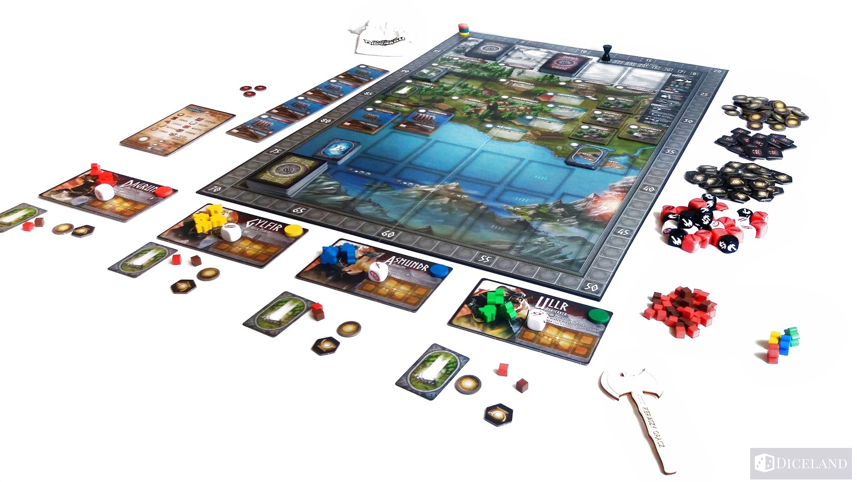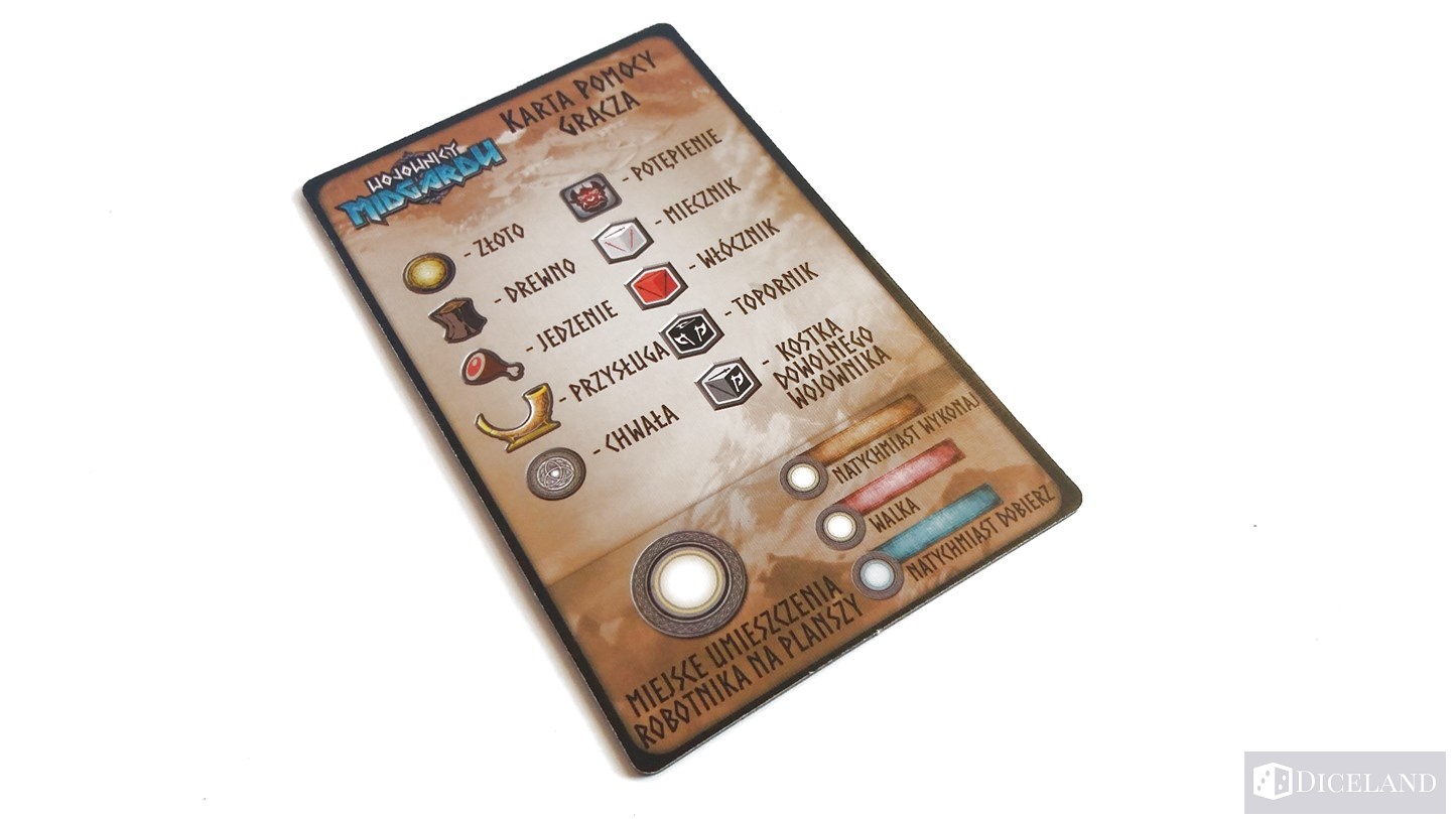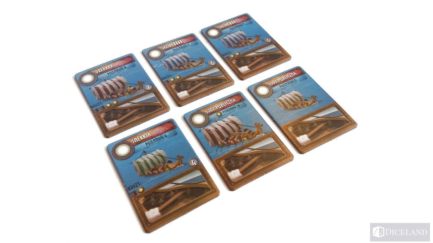 Pola na których będziemy toczyli walki to: polowanie, Trolle, dwa pola Draugrów i łodzie służące do walki z monstrami. W każdej rozgrywce pojawiają się jeszcze różne stragany, na których możemy wykonywać dodatkowe akcje. Kości naszych wojowników będziemy przechowywali na karcie naszej postaci – maksymalnie 8 sztuk.