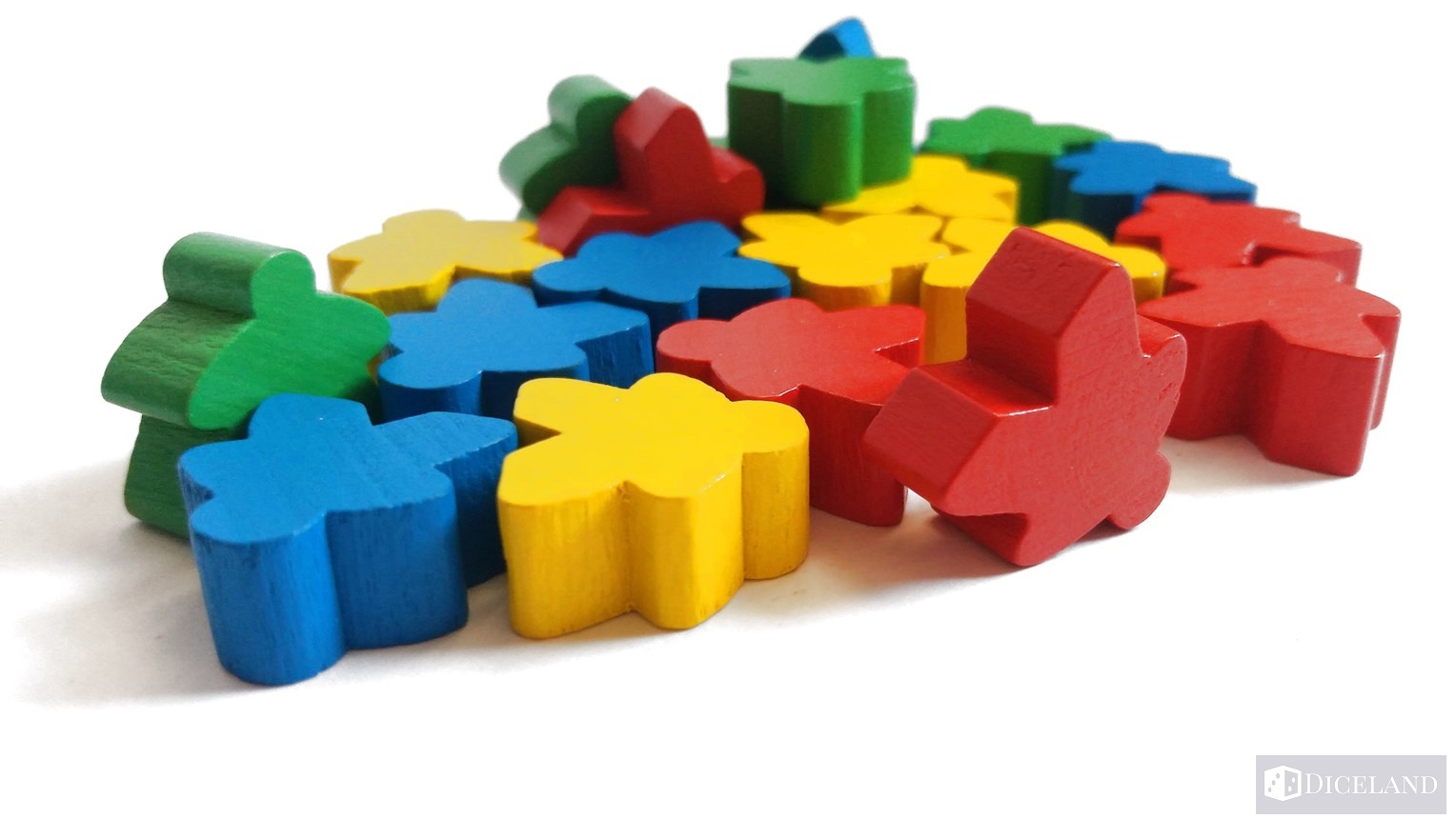 Drewniane meeple reprezentujące robotników w 4 różnych kolorach, po 5 dla każdego gracza. Dodatkowo do zaznaczenia swojej postaci i punktacji na planszy, otrzymujemy dwa drewniane dyski w swoim kolorze.