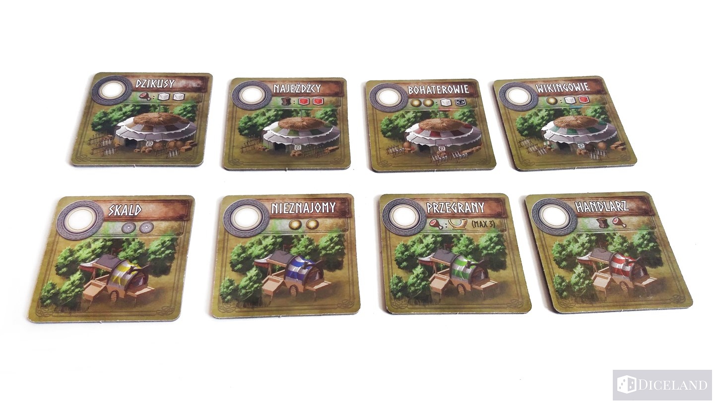 - długi dom Jarla (tutaj zyskamy miecznika i znacznik pierwszego gracza),