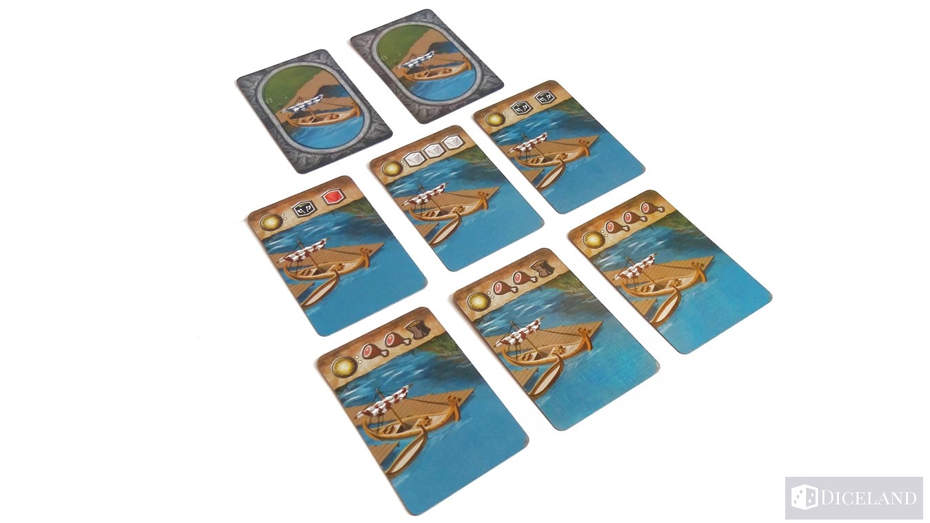 Ostatnim już elementem są mniejsze karty reprezentujące: kupców, karty podróży, karty przeznaczenia i runy.