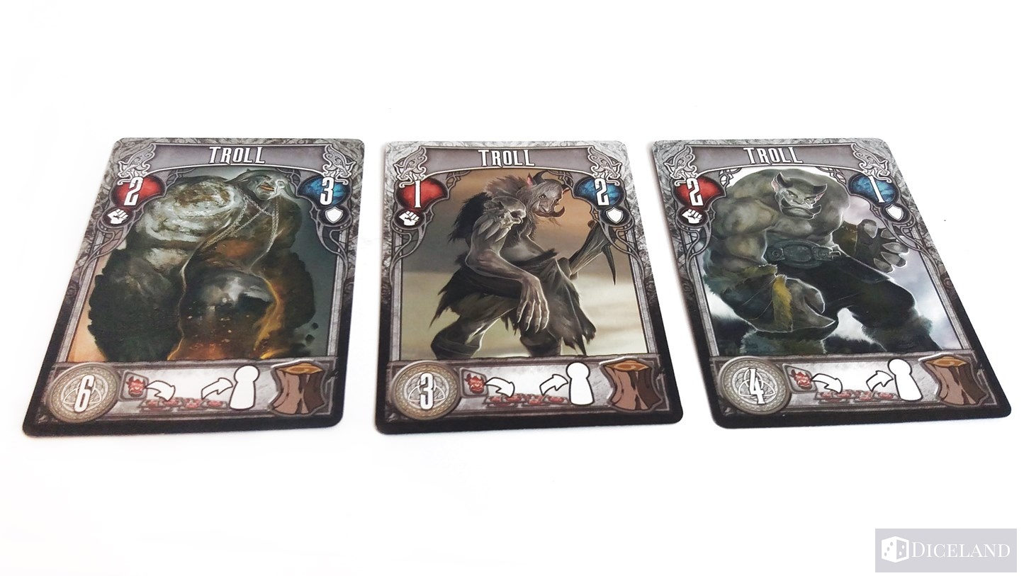 Głównym powodem, dla którego dzielni wojownicy z północy będą angażować się w szkolenie, są nawiedzające wioskę potwory z północy i czyhające na południu monstra. Zatem mamy do czynienia z Trollami, Draugrami (nordycka odmiana zombie) oraz innymi monstrami ze skandynawskiej mitologii (Fenrir, Illvatte, Eldjotnar, Lindwurm, Hrimthurs). Grafiki potworów na kartach są powtarzalne, ale jest ich dość sporo i nie psuje to efektu końcowego.