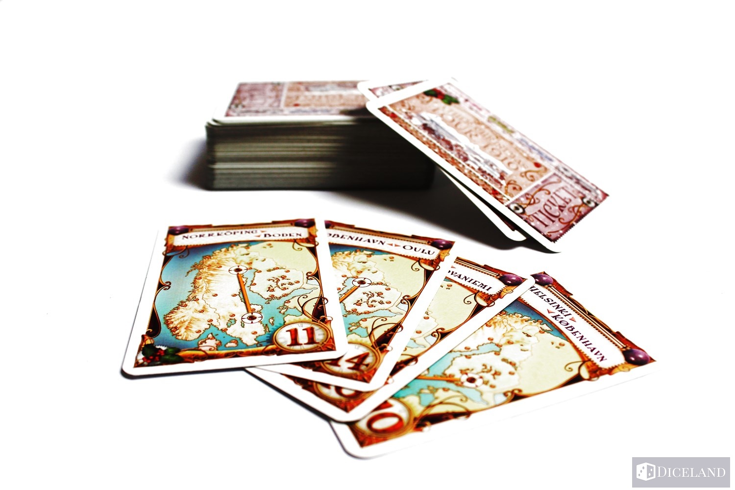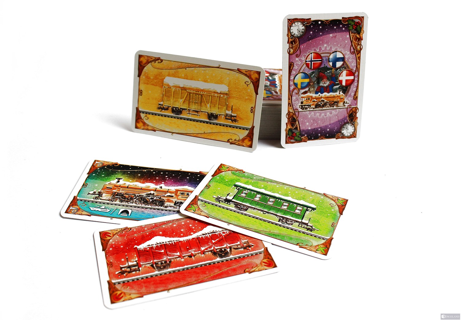 W zestawie mamy ponownie dwie talie kart – wagonów i biletów, którym zmieniono szatę graficzną na bardziej mroźną i śnieżną.
