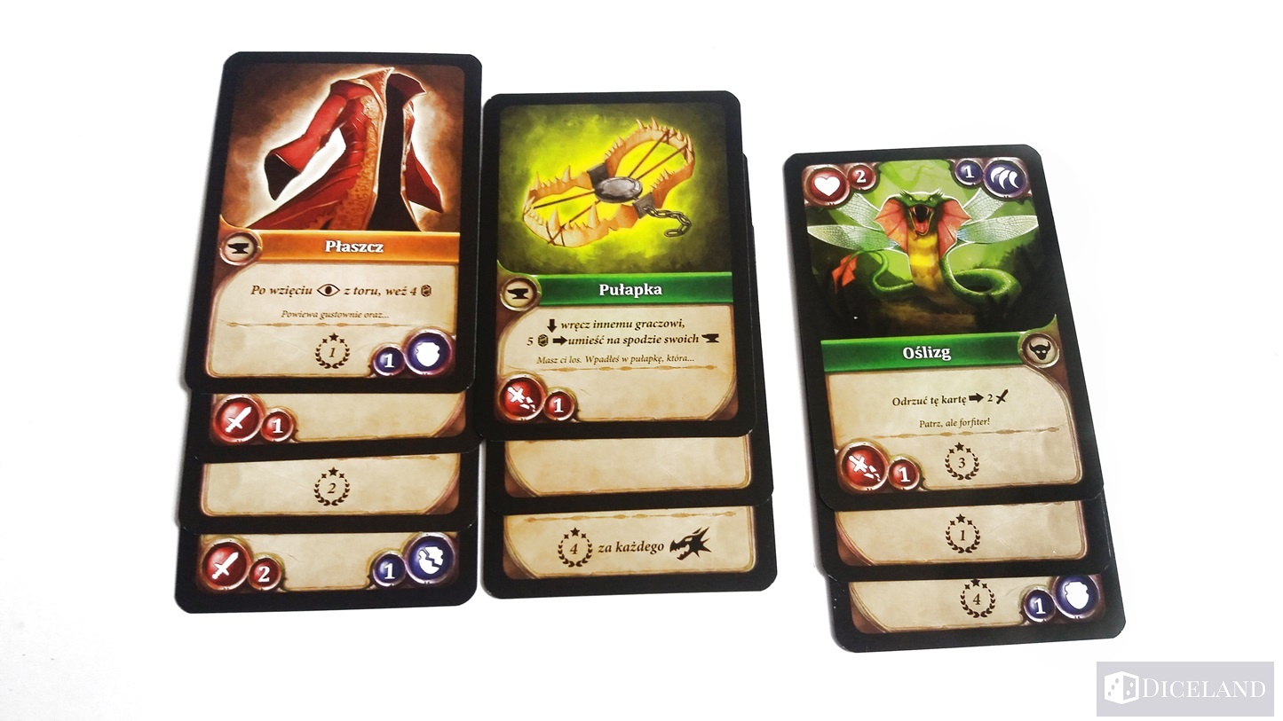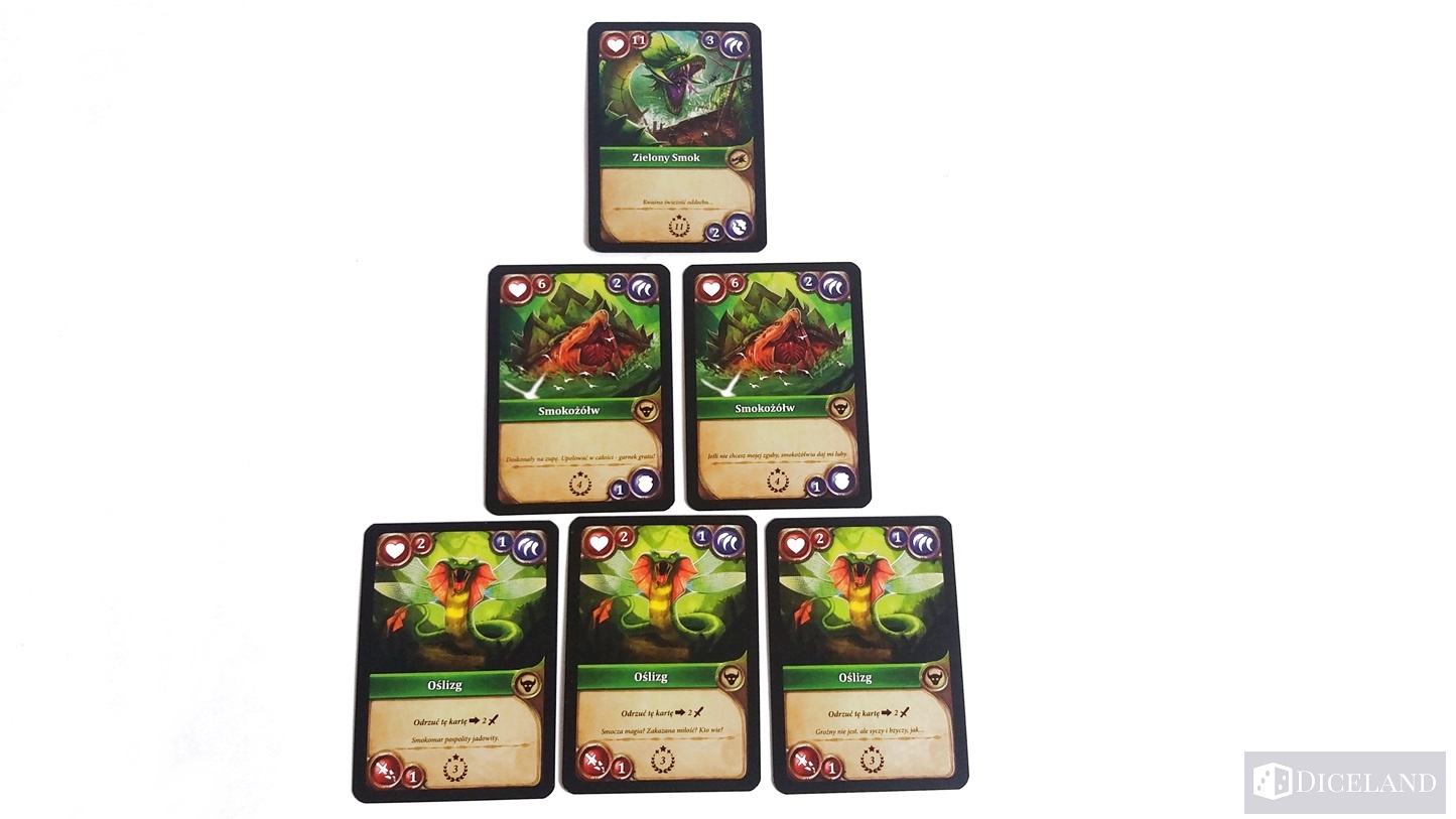 - Smoki na dnie – jak sama nazwa wskazuje, smoki umieszczamy na dnie talii, dzięki czemu możemy lepiej przygotować się do walki z nimi.