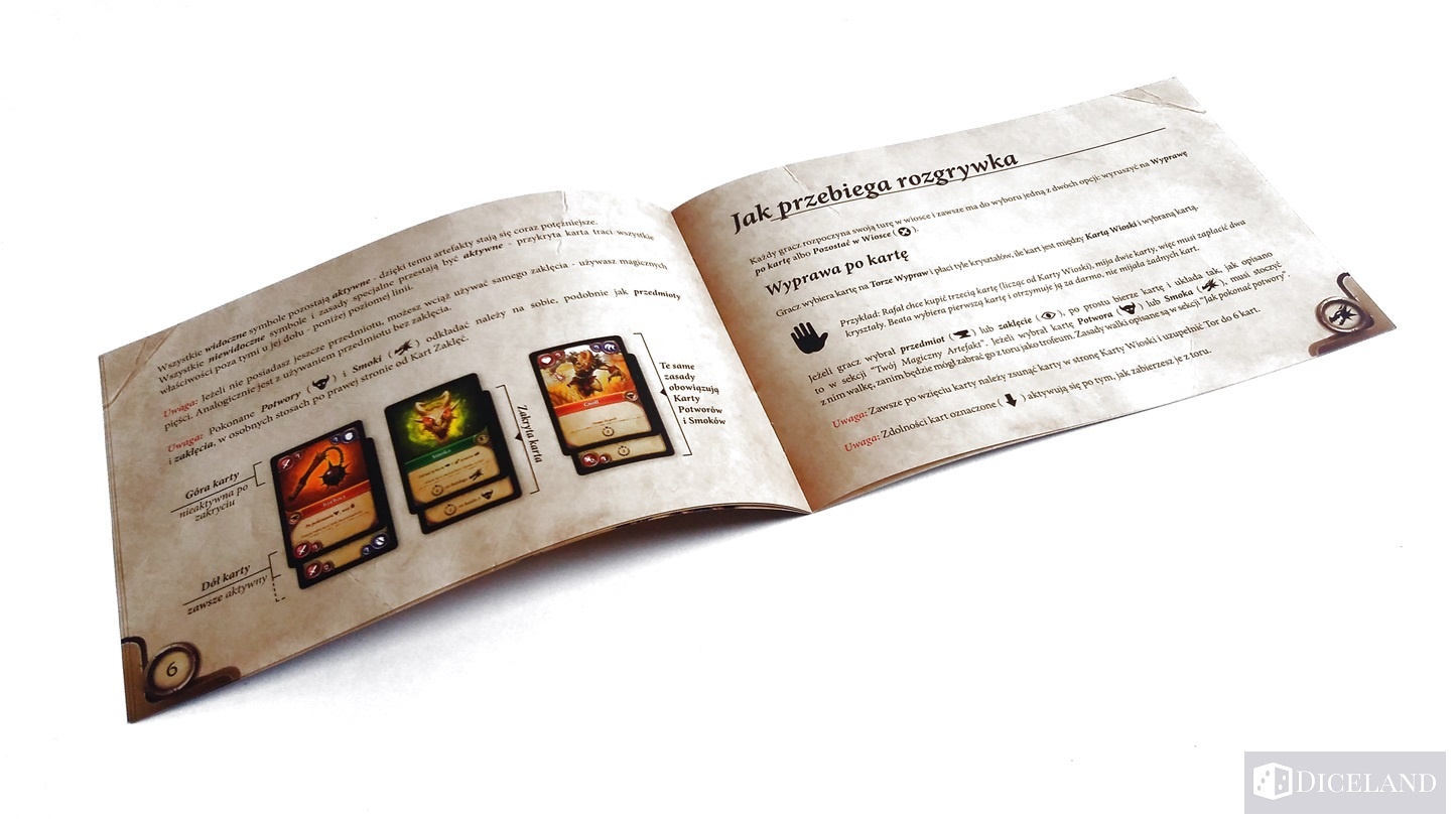 Instrukcja napisana jest w sposób czytelny i zrozumiały oraz została bogato zilustrowana licznymi przykładami. Dzięki dość dużej czcionce, czyta się ją lekko i przyjemnie. Zasady gry nie są trudne, więc nie powinniście mieć z nimi raczej żadnych problemów.
