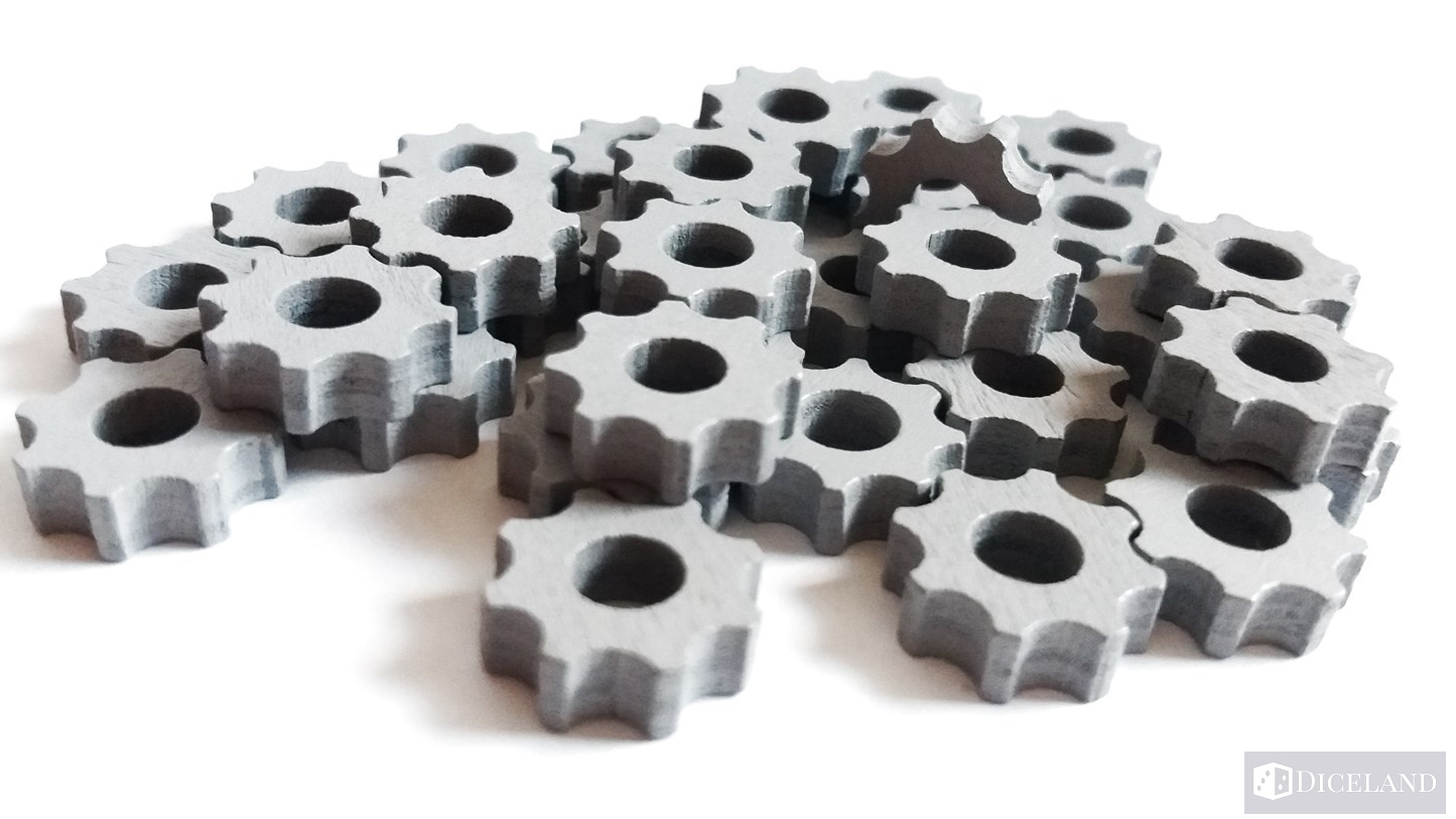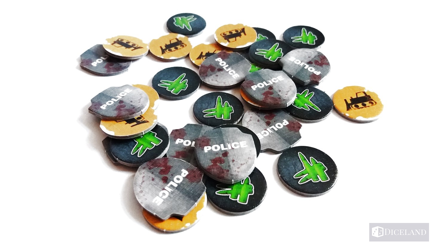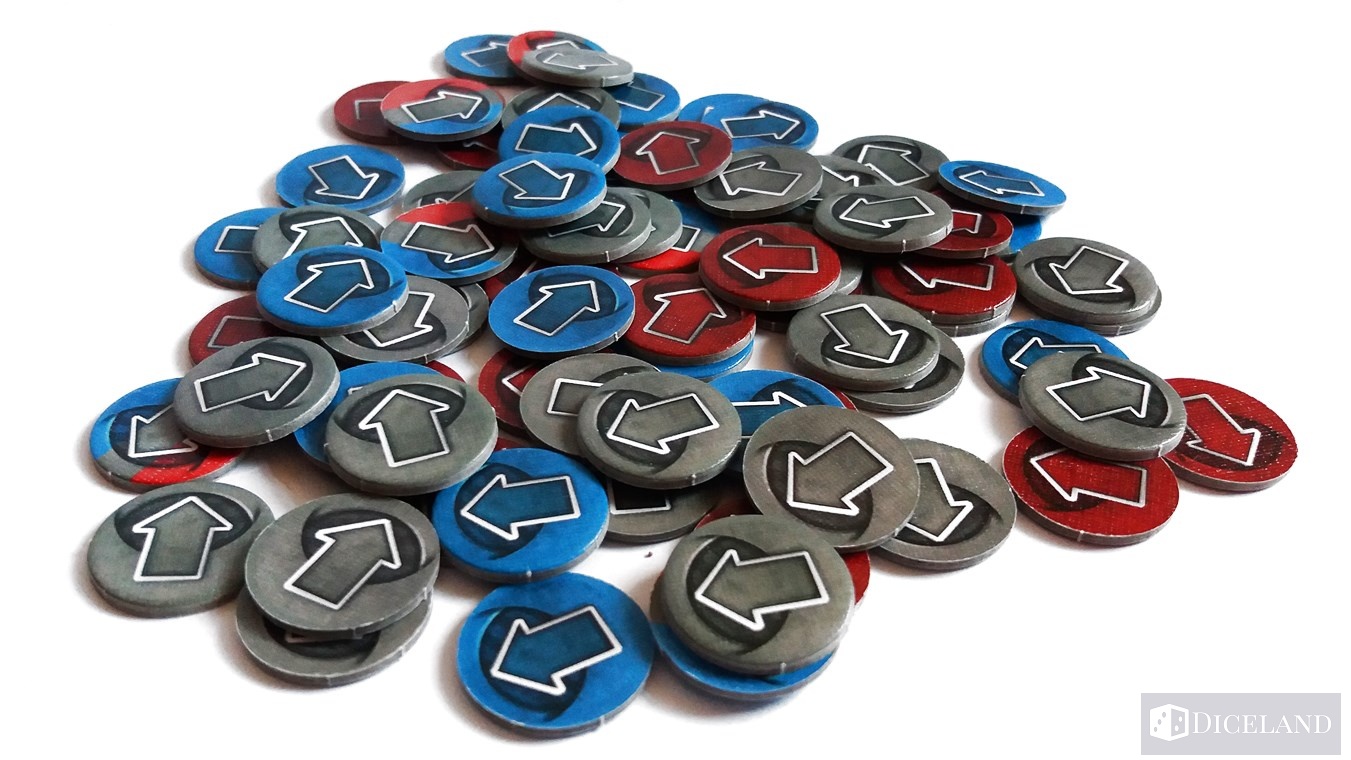 Do gry dołączony jest również tor punktacji oraz kilka dodatkowych żetonów: tarczy, przebudowy, mnożenia, naboi, 4 żetony punktacji po jednym dla każdej frakcji, żeton pierwszego gracza oraz żeton „właściciela gry”.