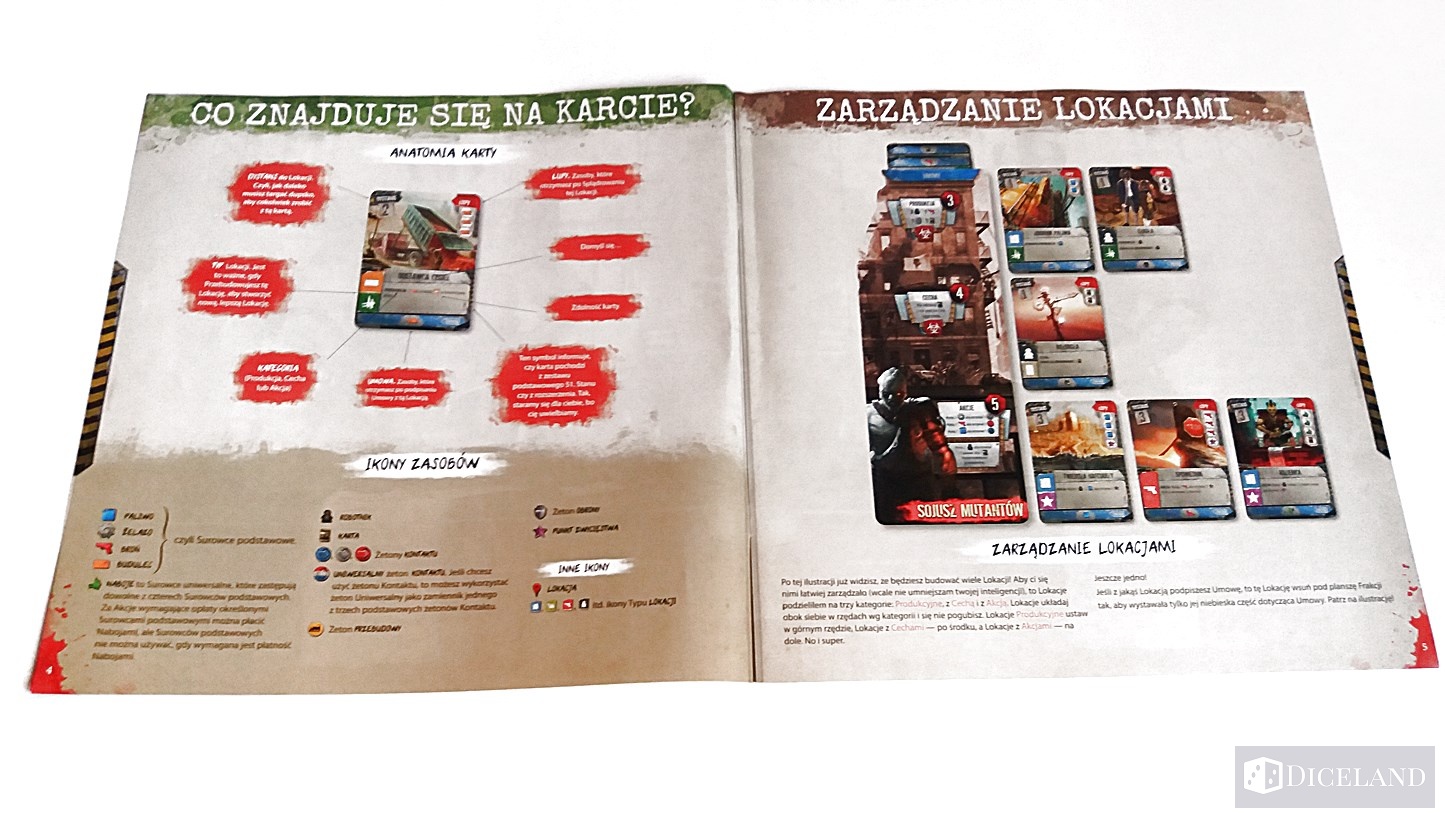 Zasady gry 51 Stan: Master Set znajdują się na 16 stronach dobrze napisanej instrukcji. Zawiera ona wiele ilustracji i przykładów, które pomogą wam zrozumieć mechanikę gry. Po pierwszym jej przeczytaniu raczej nie powinniście mieć problemów ze zrozumieniem zasad. Niestety instrukcja zawiera kilka wpadek w postaci błędów językowych, interpunkcji i nawet niewłaściwego miejsca jednego z akapitów. Wyraźnie rzuca się to w oczy podczas jej czytania i dziwi mnie takie przeoczenie twórców. Na całe szczęście nie wpływa to w żaden sposób na jej zrozumienie.