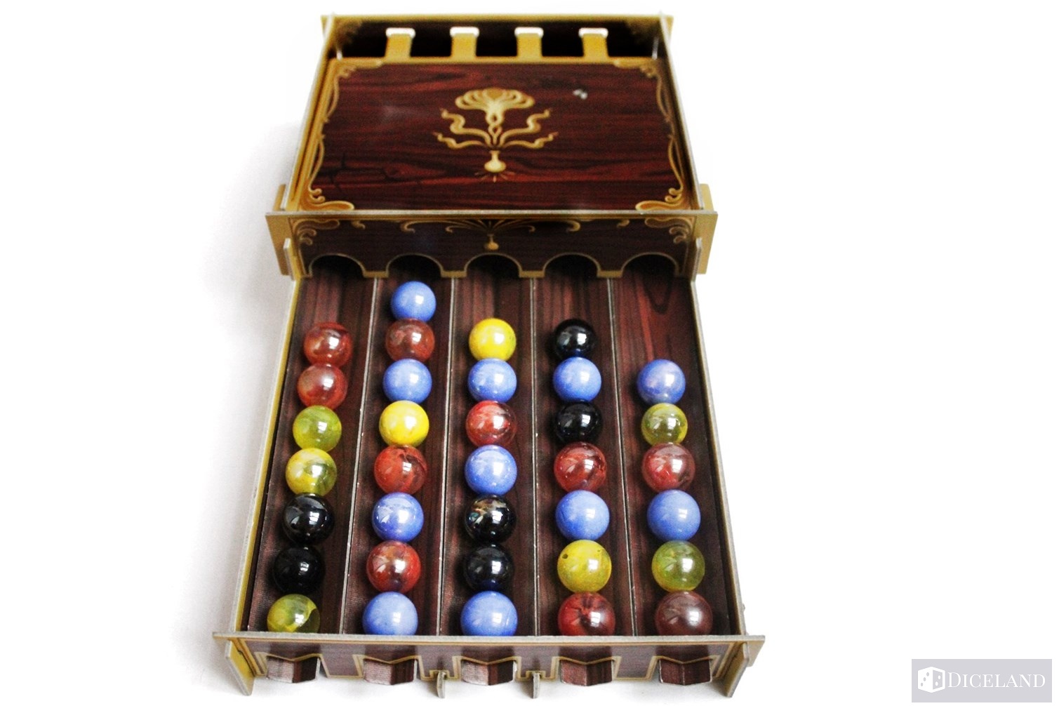 Ostatnimi elementami gry są szklane kulki ingrediencji (80 sztuk) w czterech kolorach. Każdy z nich symbolizuje inny składnik naszego eliksiru. Tak więc znajdziemy tu, np: łupież wróżki, ogrzą flegmę czy łzy jednorożca.