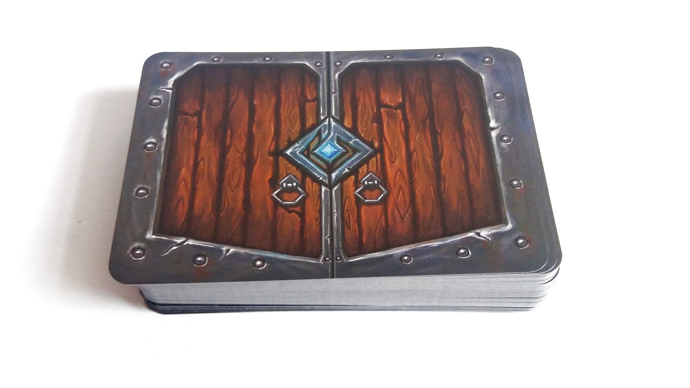 44 karty spotkań, które z jednej strony prezentują zamknięte drzwi, a z drugiej niespodziankę, która się za nimi kryje. Spotkamy tam przeróżne kreatury oraz wiele śmiercionośnych pułapek. Grafiki są bardzo ciekawe i pomagają wczuć się klimat gry, szkoda że jednak na 44 kartach potrafią się one powtarzać. Oprócz kart spotkań, w pudełku znajdziemy również karty podziemi, które warunkują naszą grę w danym lochu, a na jej odwrocie znajdziemy bossa, którego będziemy musieli pokonać po przejściu wszystkich pięter.